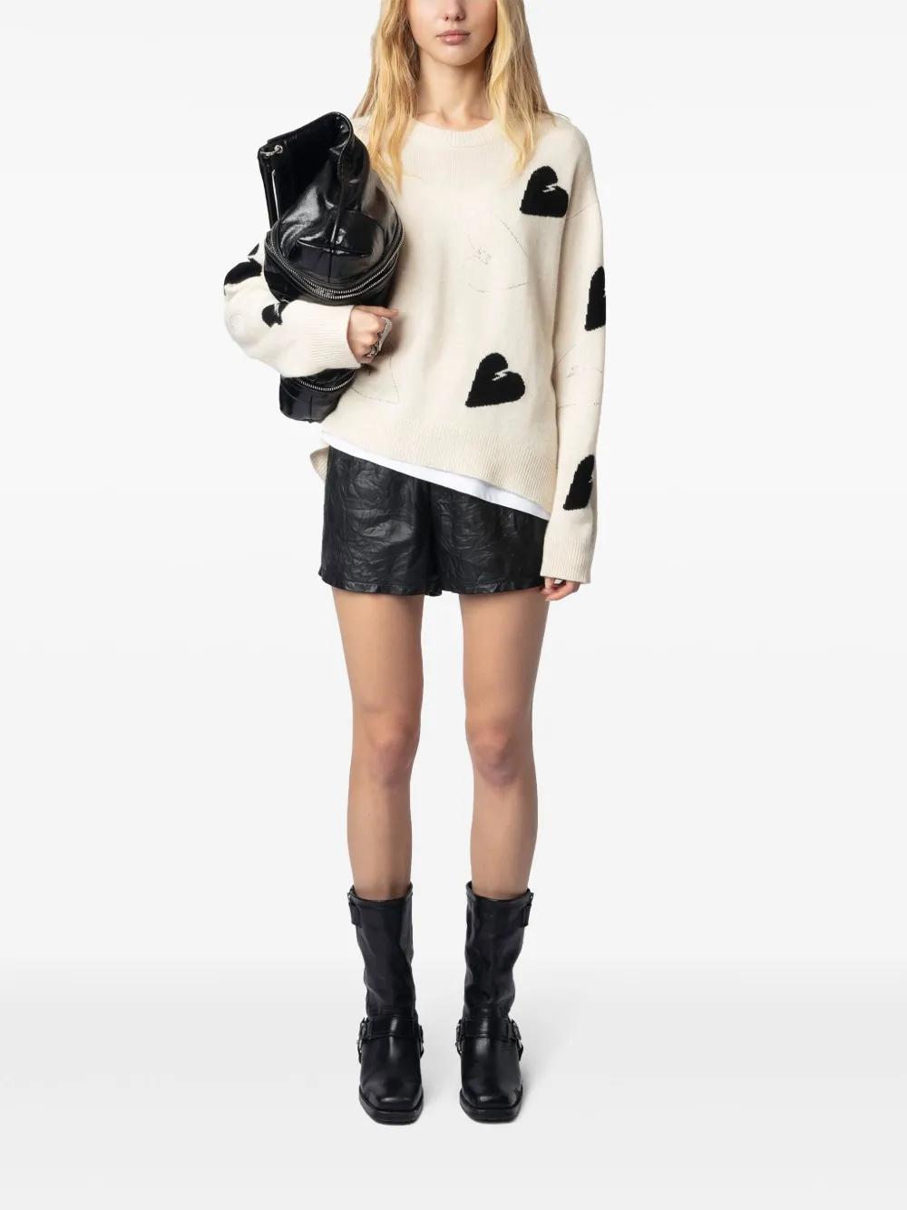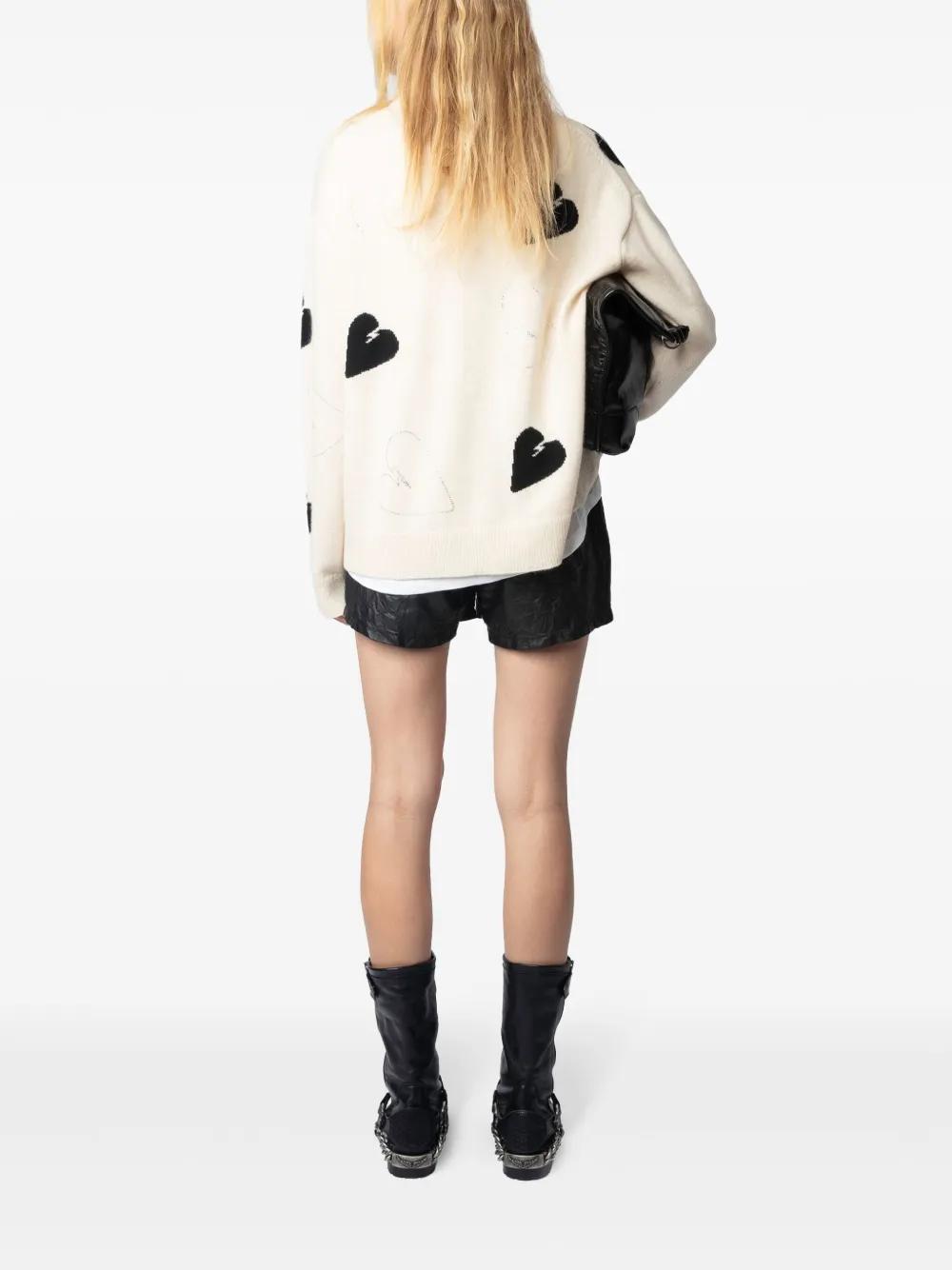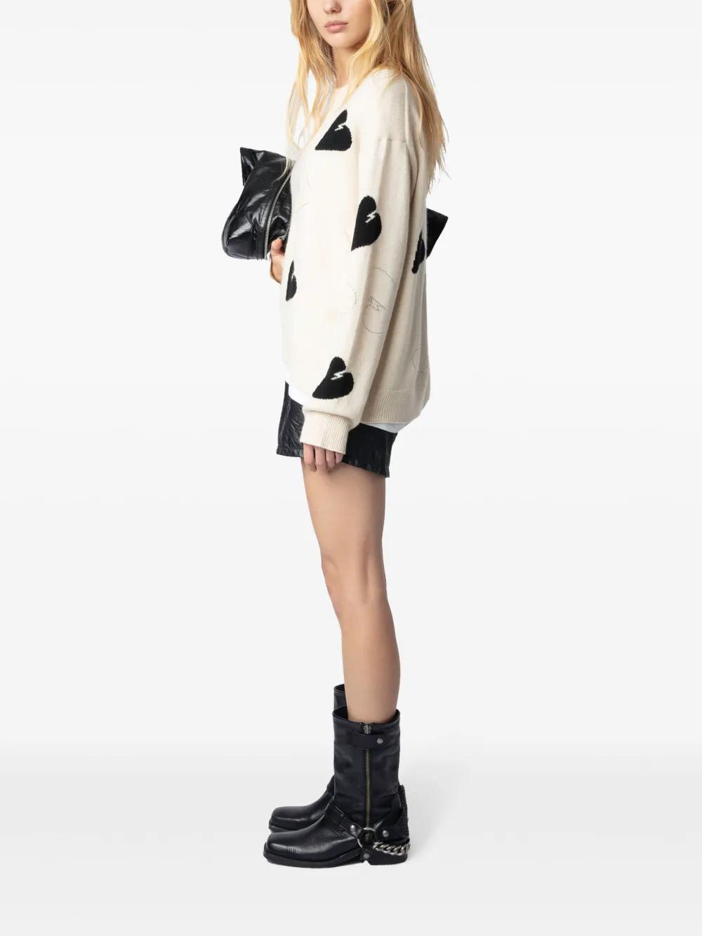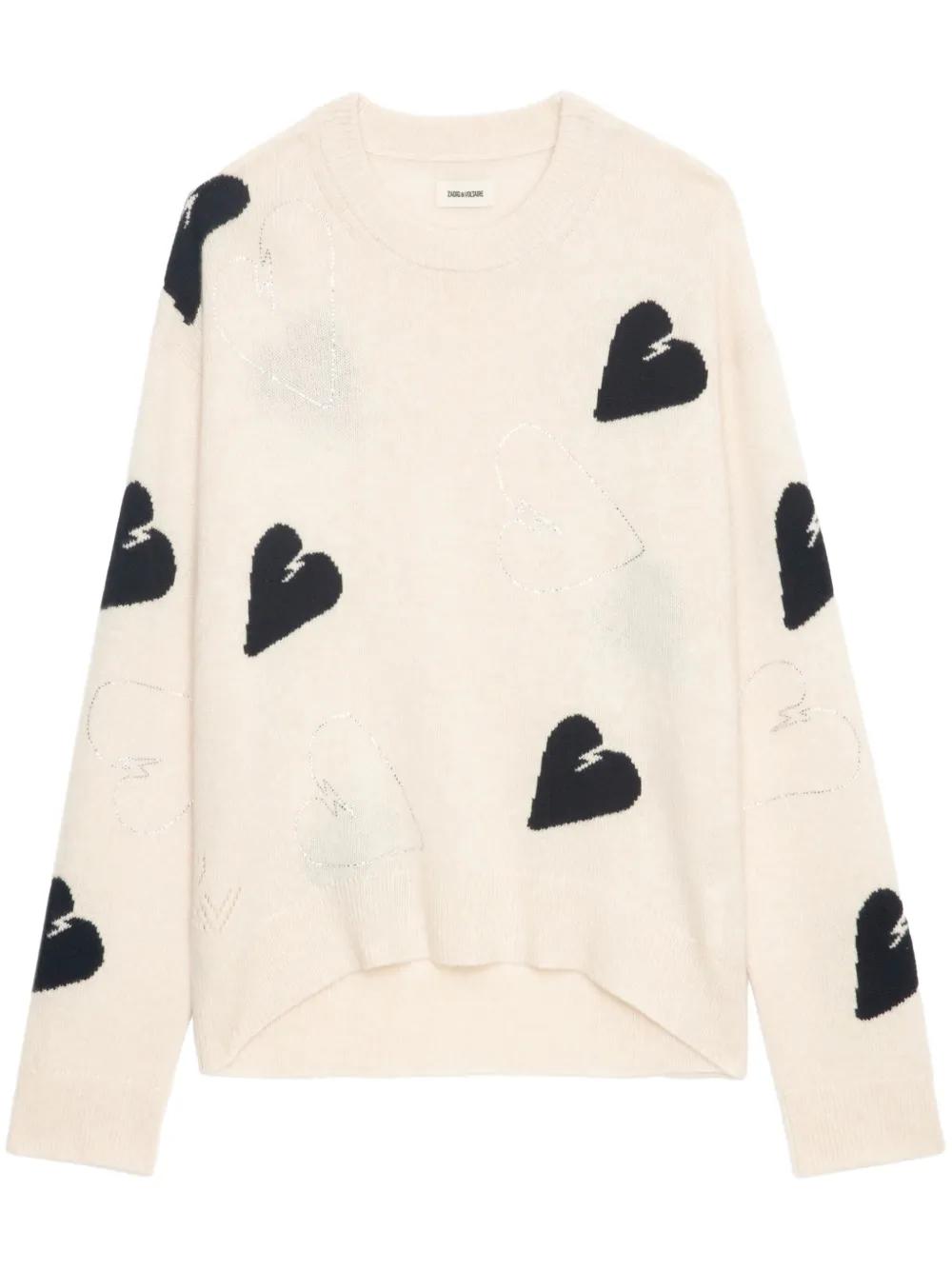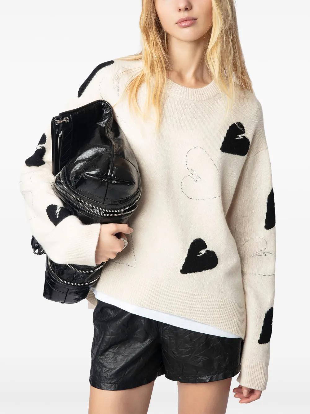 white patterned intarsia knit rhinestone embellishment round neck long sleeves