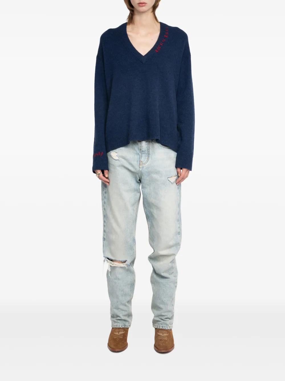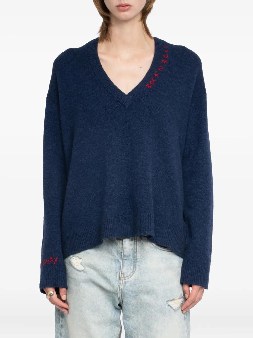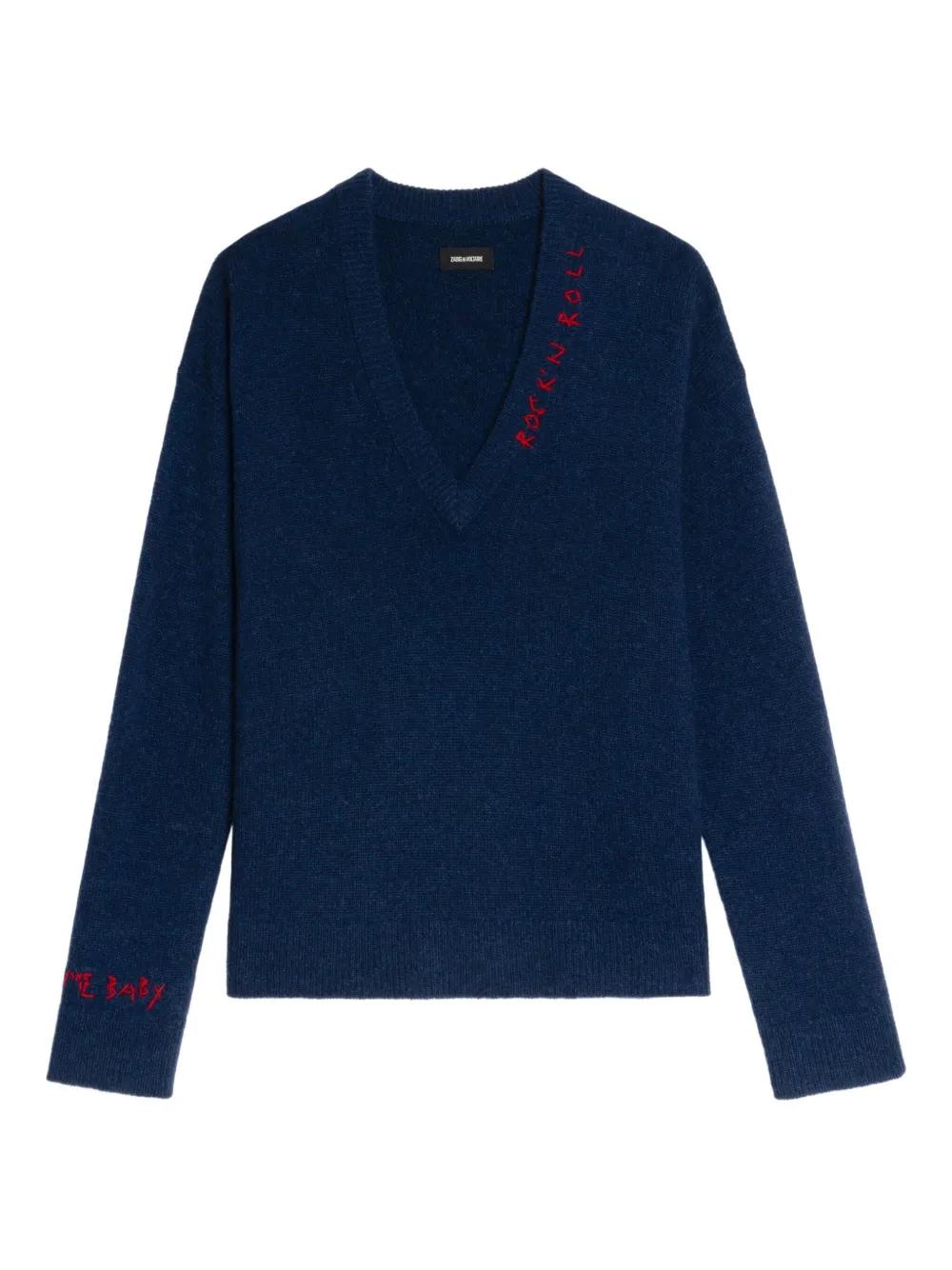 Zadig&Voltaire Miky embroidered V-neck sweater - Blue