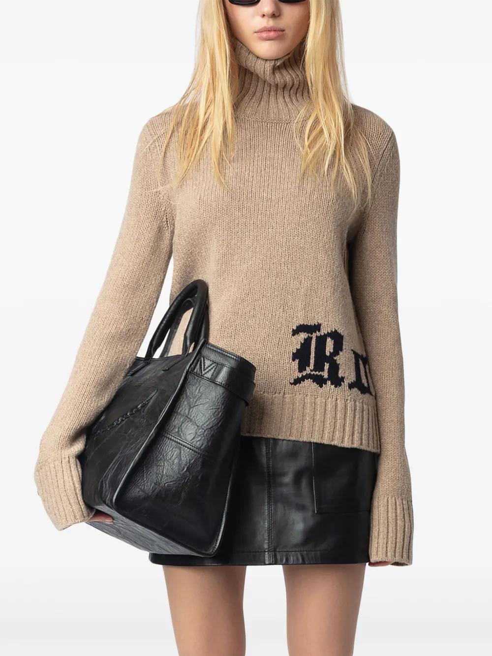 black wool-cashmere blend knitted construction brushed effect roll neck long sleeves ribbed cuffs and hem