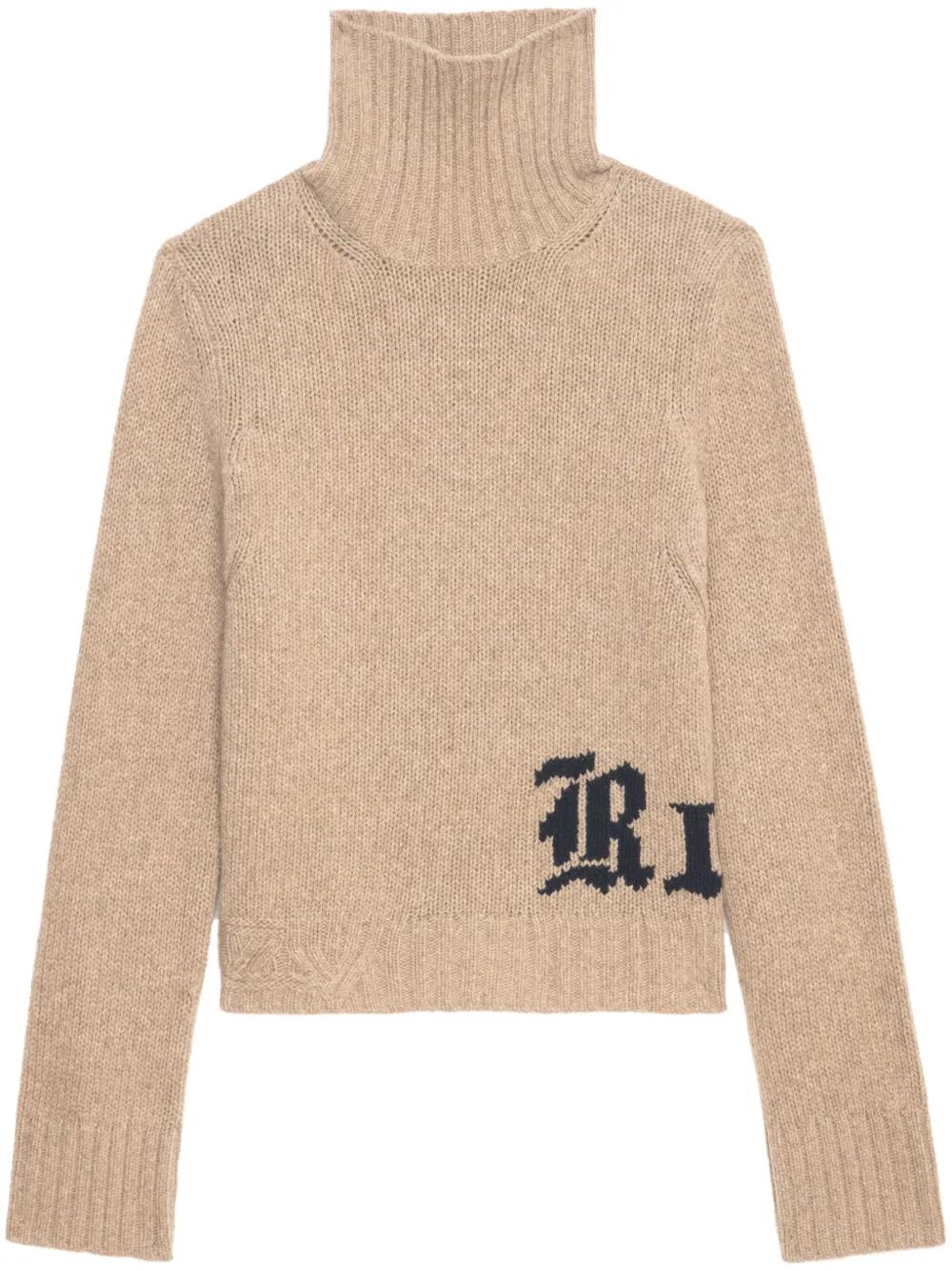 camel brown cashmere knitted construction crew neck short raglan sleeves ribbed cuffs ribbed hem