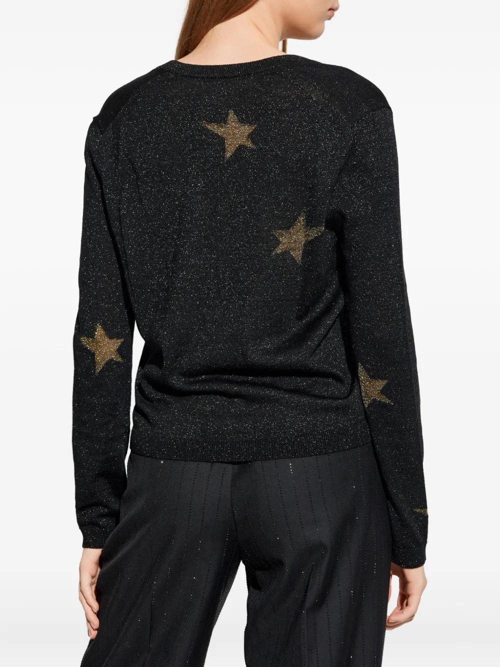 black cashmere crew neck long sleeves star elbow patches ribbed-knit edge