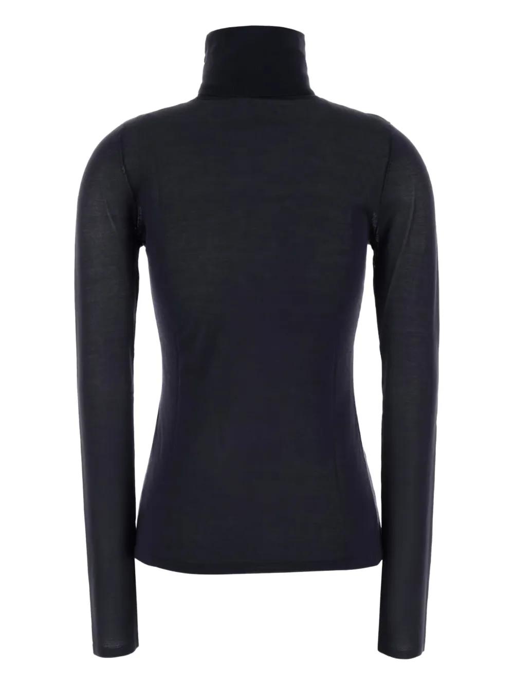 midnight blue button fastening at the shoulder high neck long sleeves ribbed trim