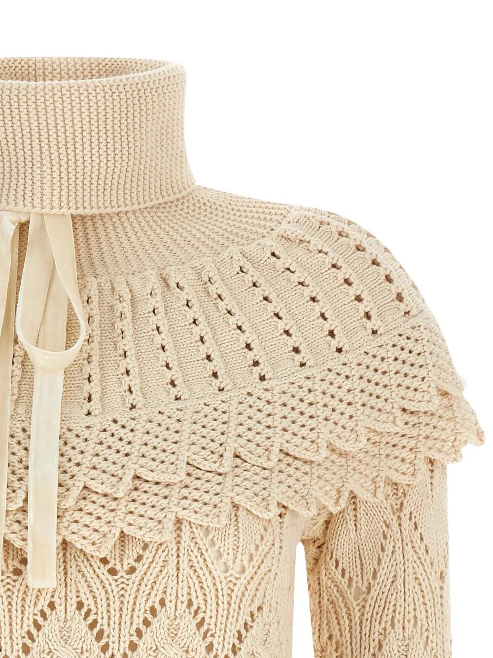 ZIMMERMANN ruffled-collar crocheted sweater - Neutrals