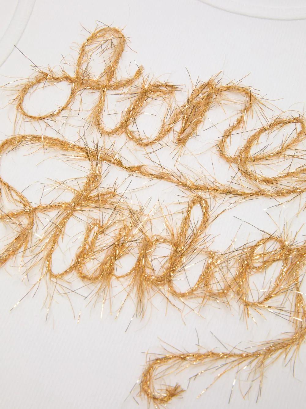white text graphic short sleeves round neck button detail at the shoulder