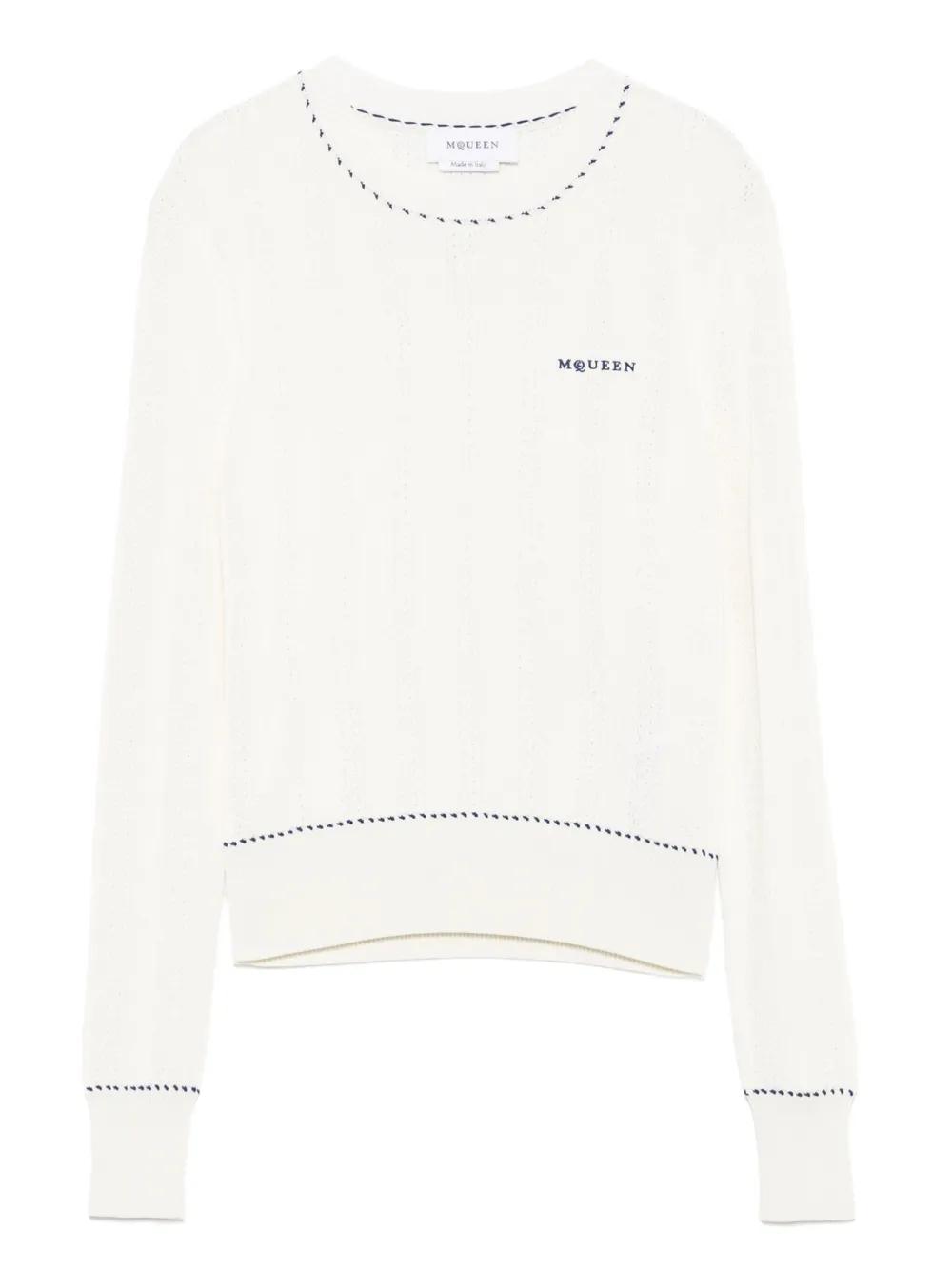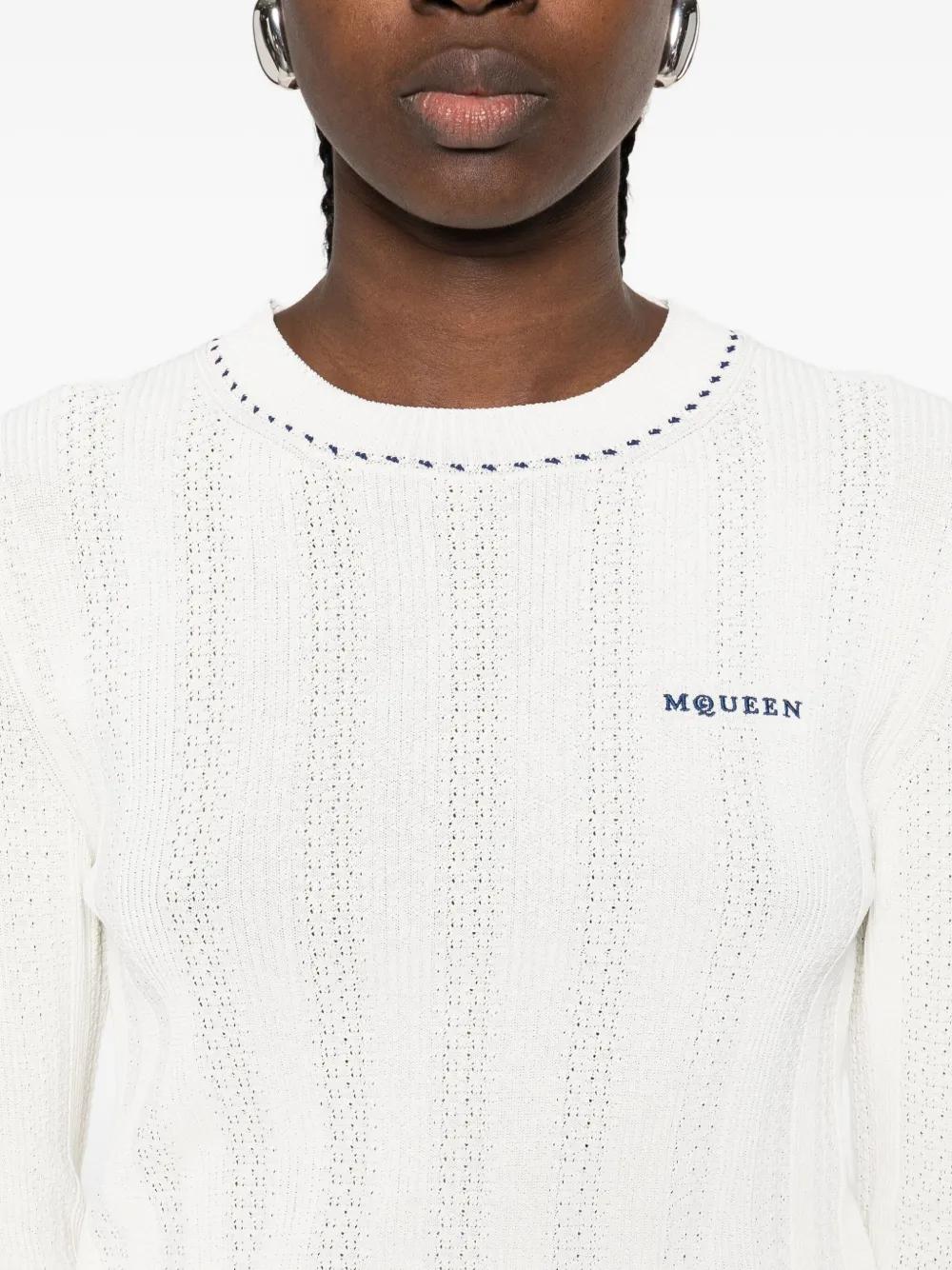 Alexander McQueen logo-embroidered ribbed-knit top - White