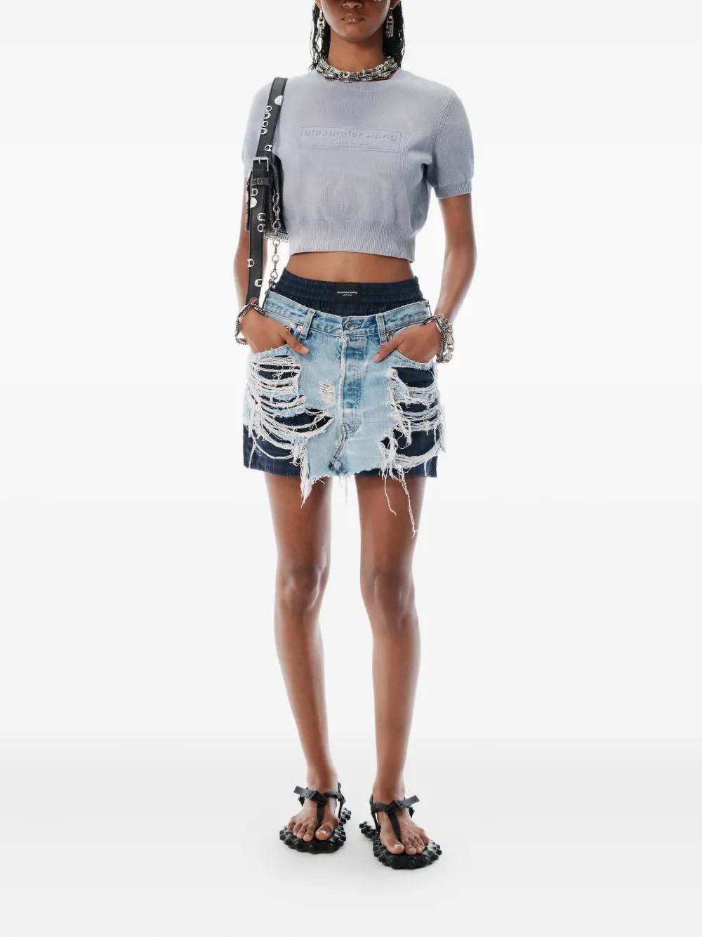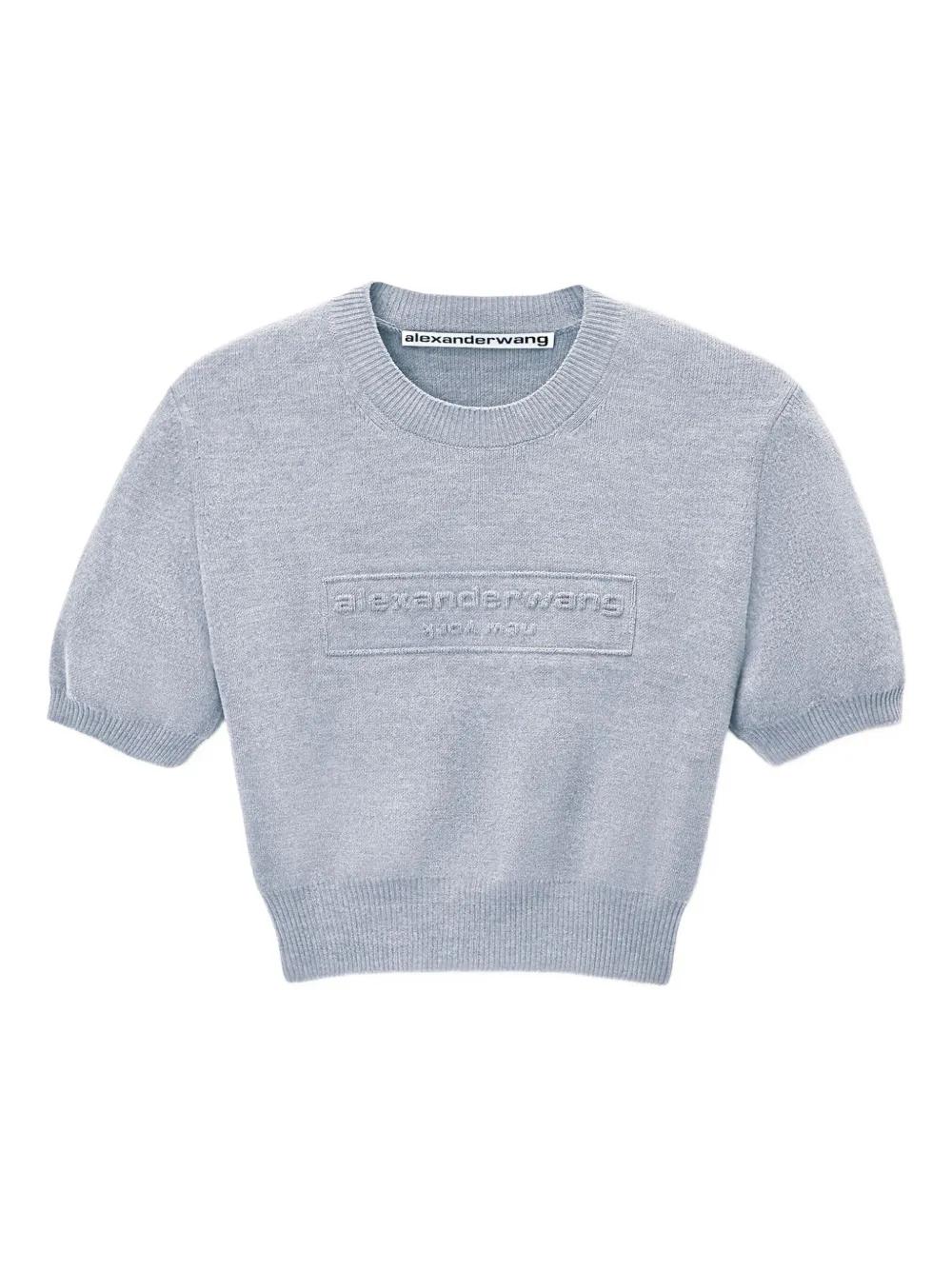 light grey short sleeves cropped length ribbed hem embossed logo round neck