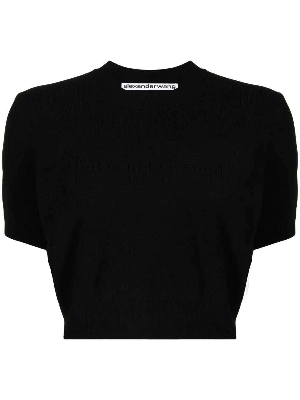 Alexander Wang logo-embossed cropped knitted top - Black