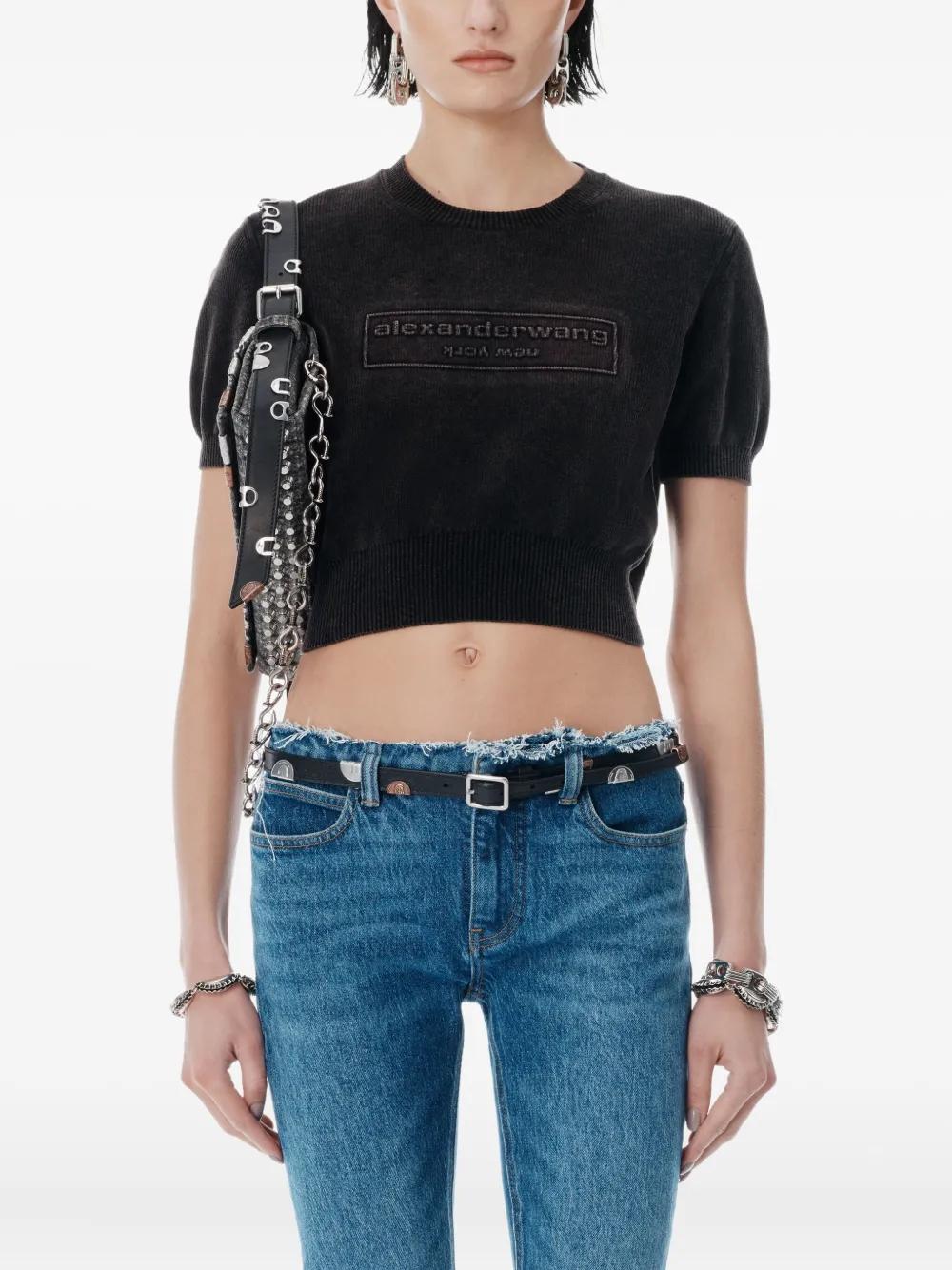 Alexander Wang logo-embossed short-sleeve knit top - Black