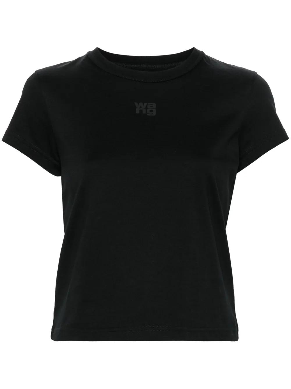 black cotton lightweight jersey logo print at the chest crew neck short sleeves straight hem