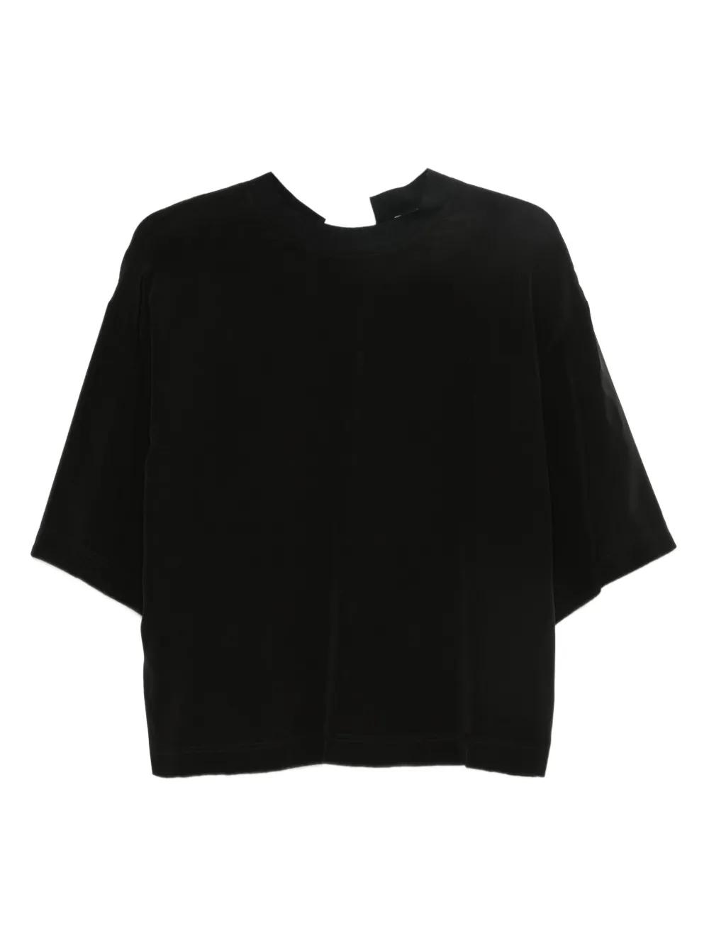 milk white cotton tulle inserts fringed edge round neck short sleeves cropped