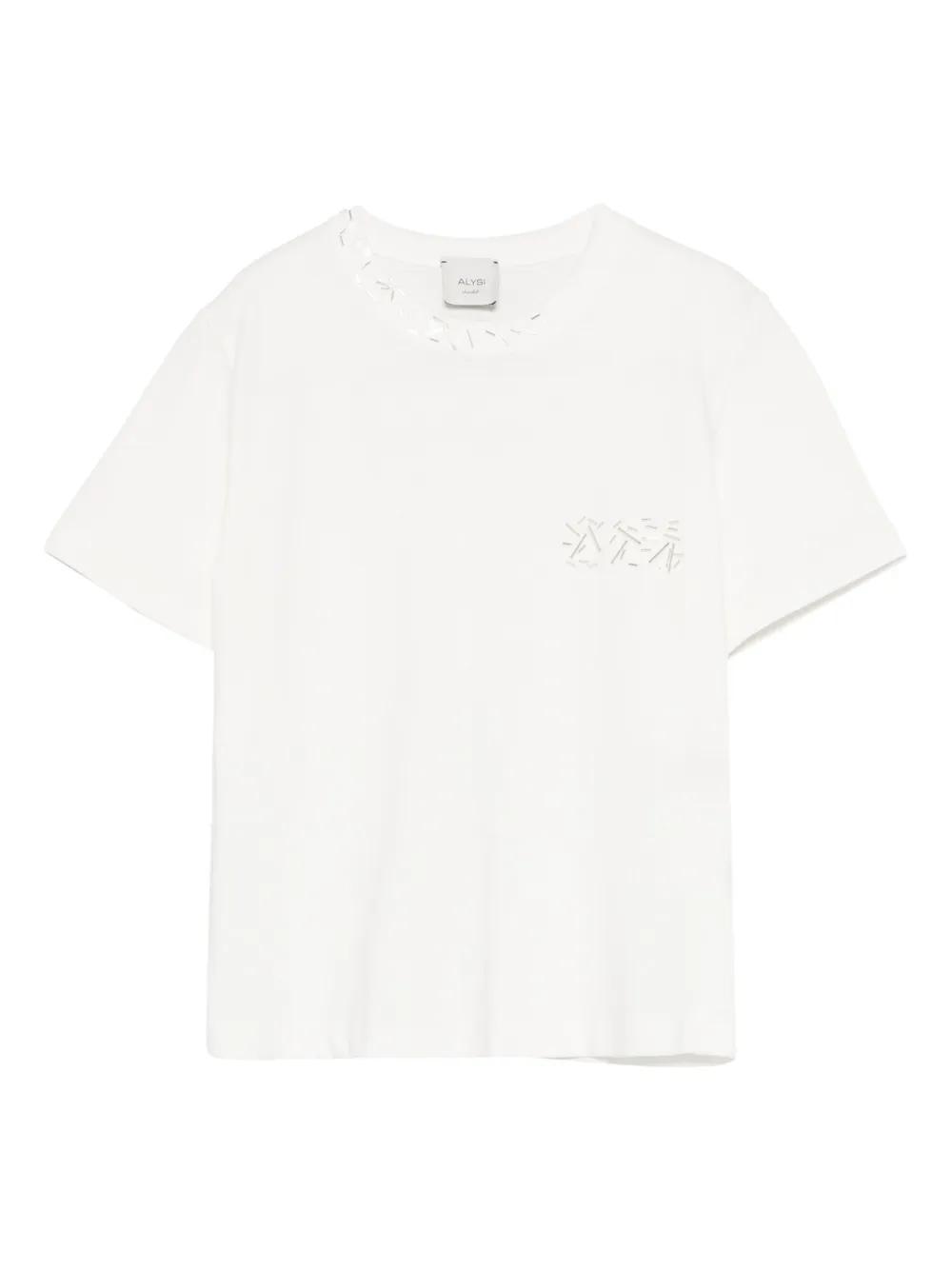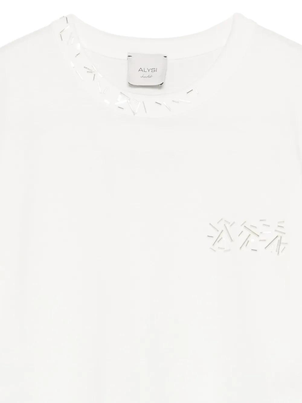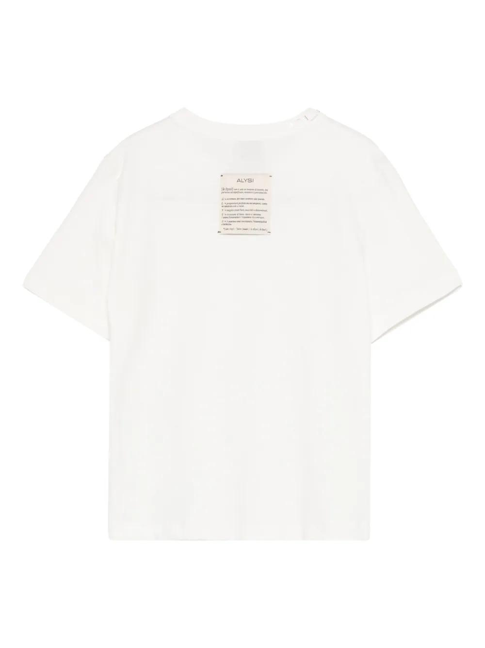 milk white cotton tulle inserts fringed edge round neck short sleeves cropped