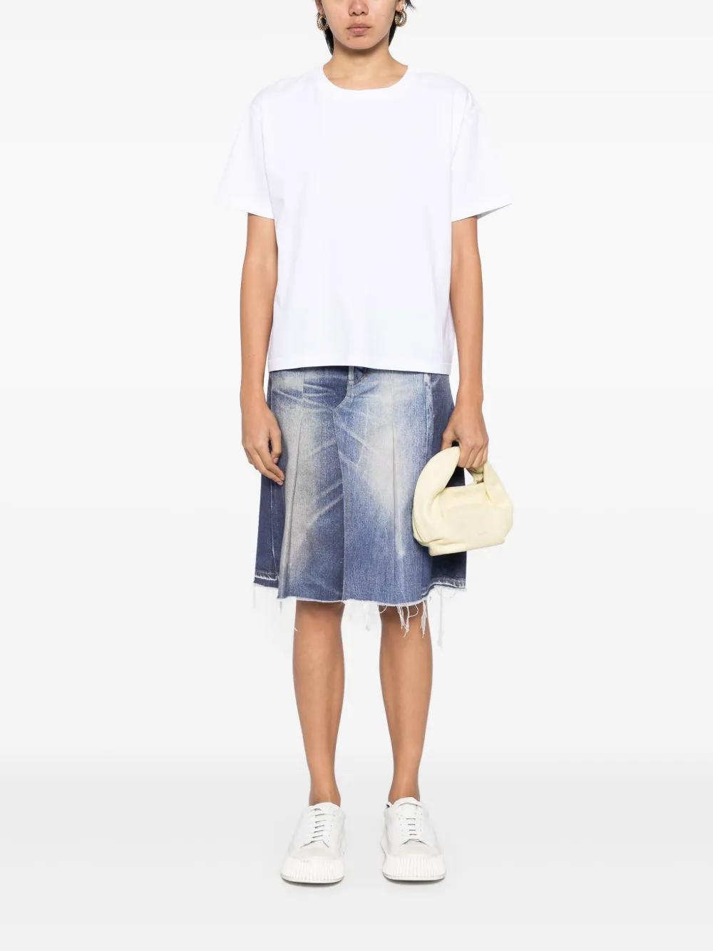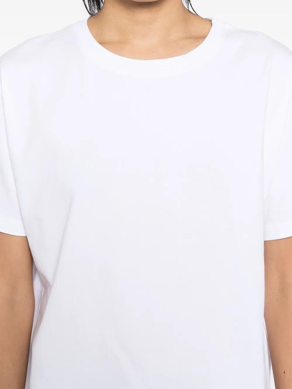 white cotton jersey texture crew neck drop shoulder short sleeves straight hem