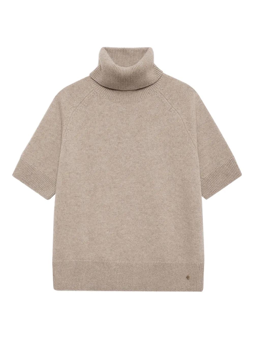 stone beige short sleeves ribbed hem ribbed cuffs turtleneck raglan sleeves