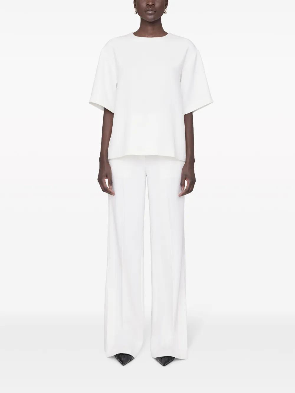 white crepe texture crew neck concealed rear zip fastening half-length sleeves straight hem