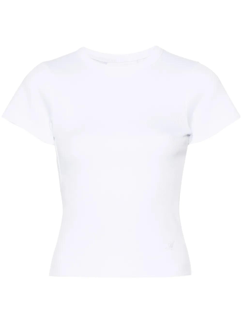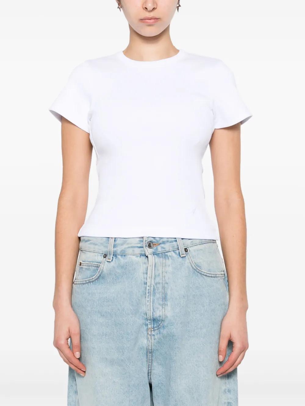 white stretch-cotton fine ribbed crew neck short sleeves rear cut-out detailing straight hem pull-on style