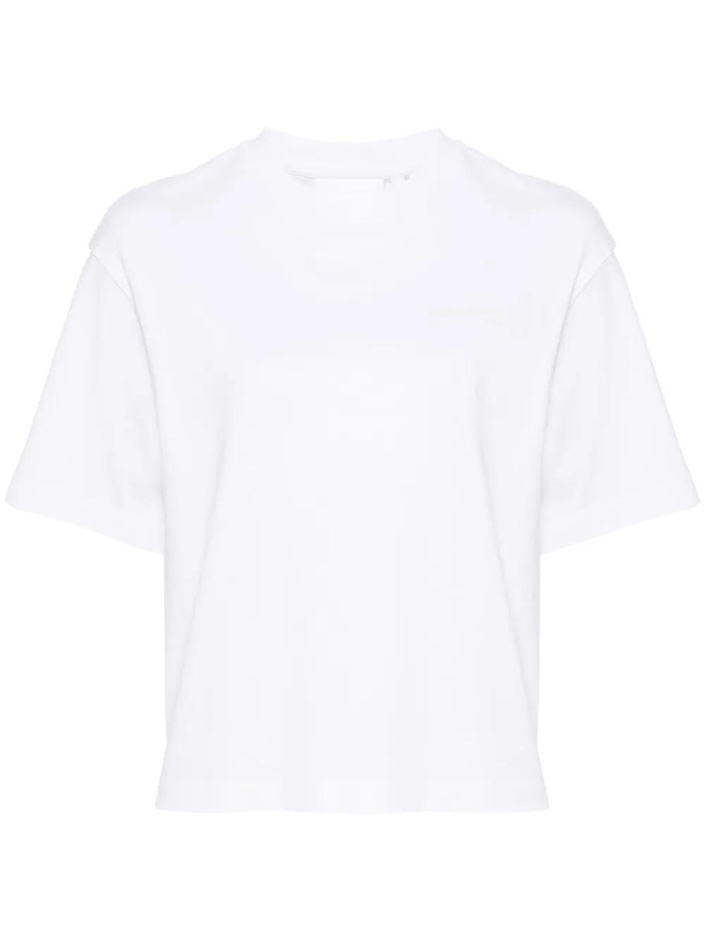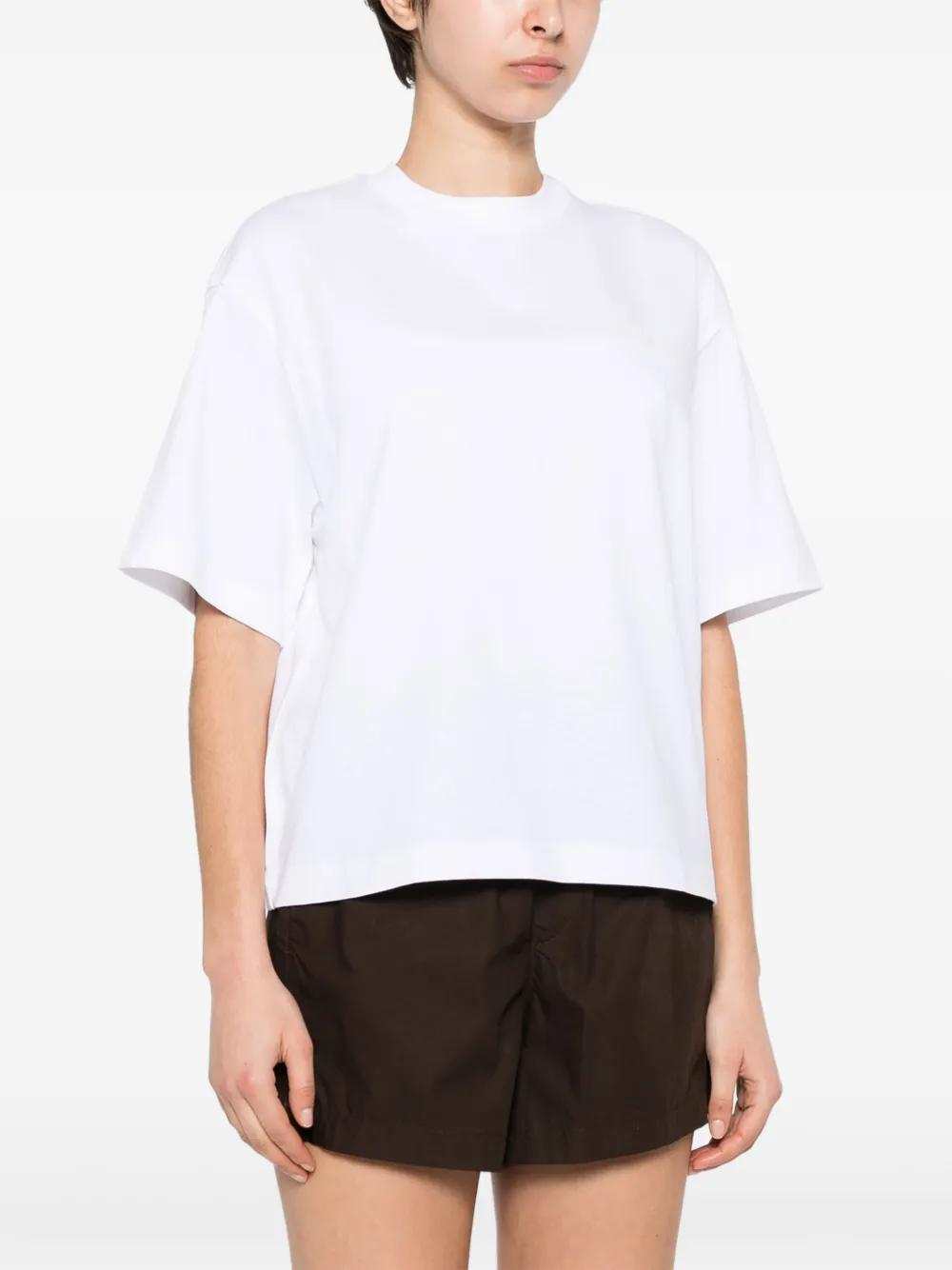 white cotton soft jersey crew neck tonal logo print at the chest short sleeves straight hem pull-on style