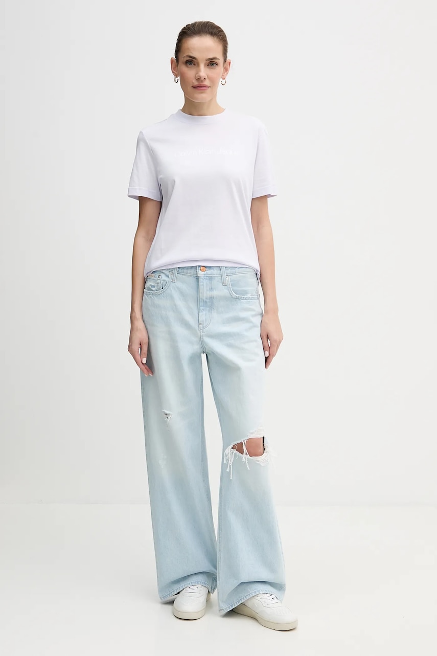 Calvin Klein Jeans t-shirt bawełniany damski kolor fioletowy LV047C912G