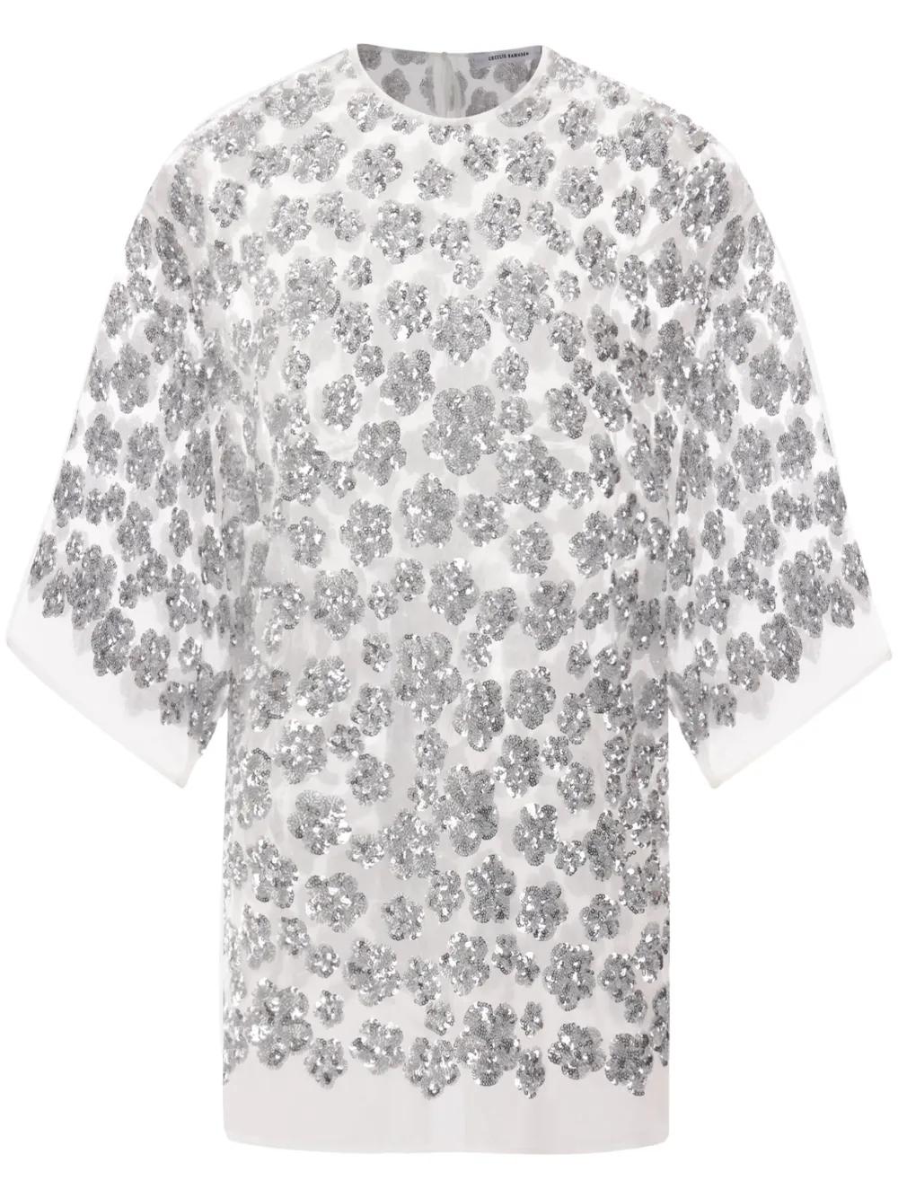 Cecilie Bahnsen floral-sequins T-shirt - White