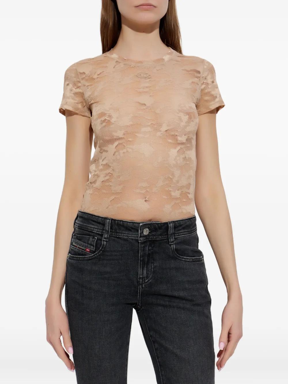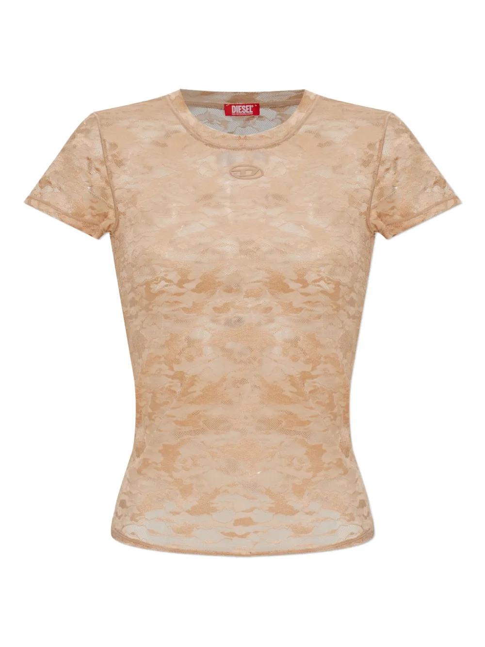 brown lace detail logo detail round neck short sleeves