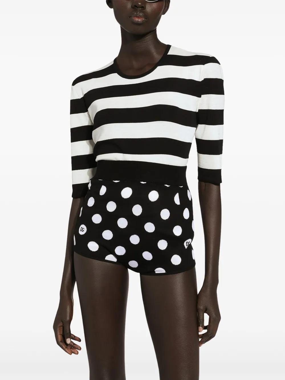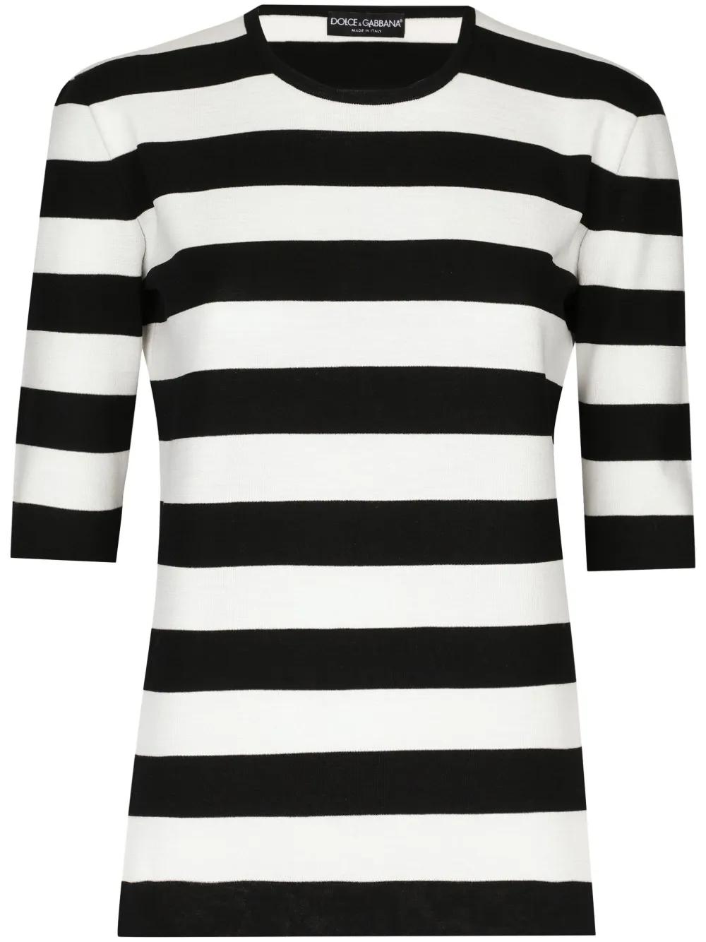 black/white virgin wool horizontal stripe pattern crew neck half-length sleeves straight hem