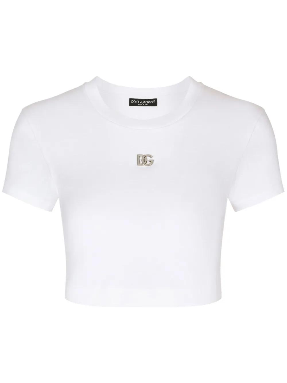 Dolce & Gabbana logo-embroidered crop T-shirt - White