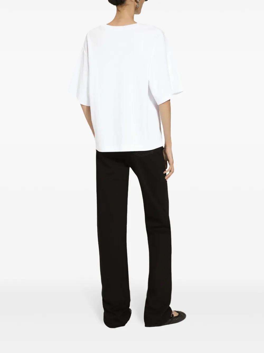 white cotton jersey texture logo print to the front drop shoulder crew neck