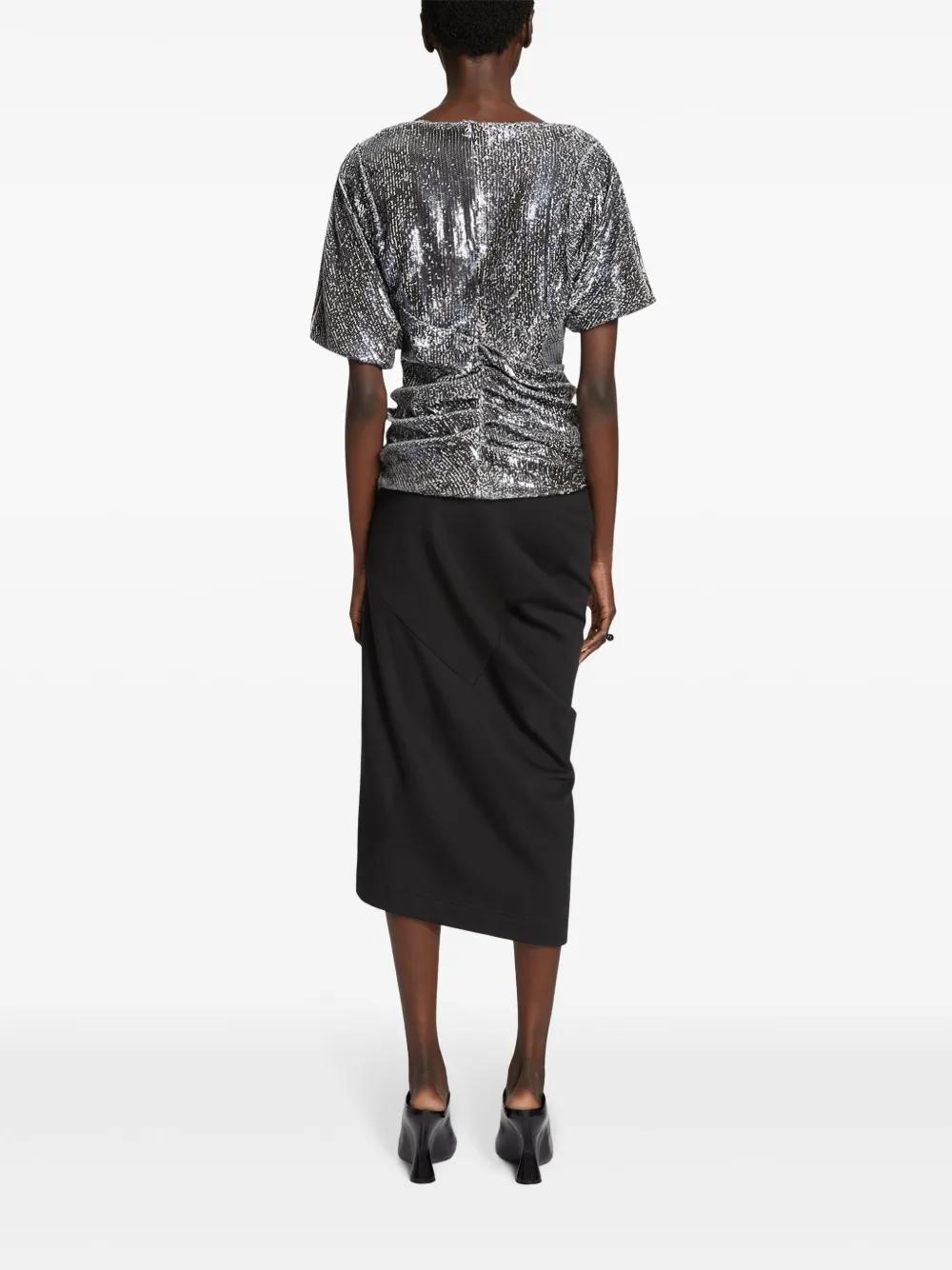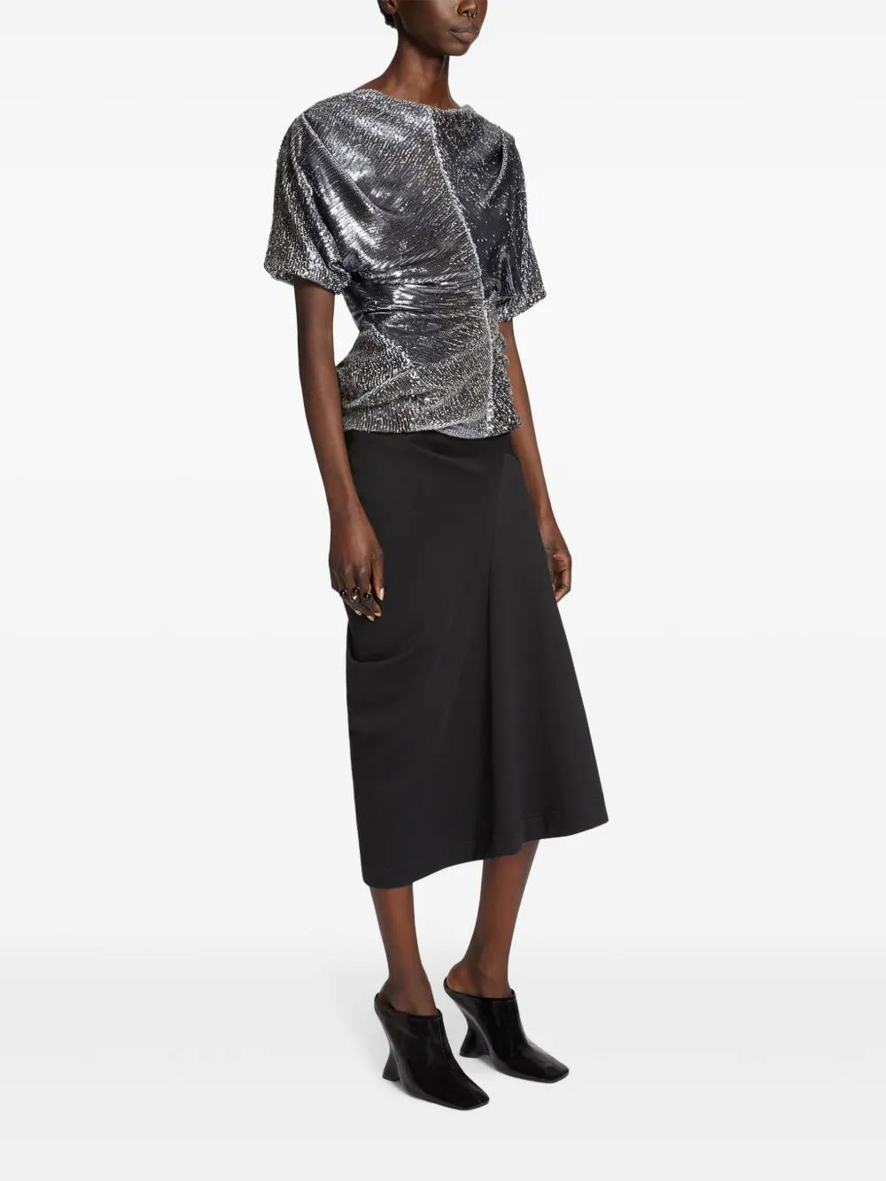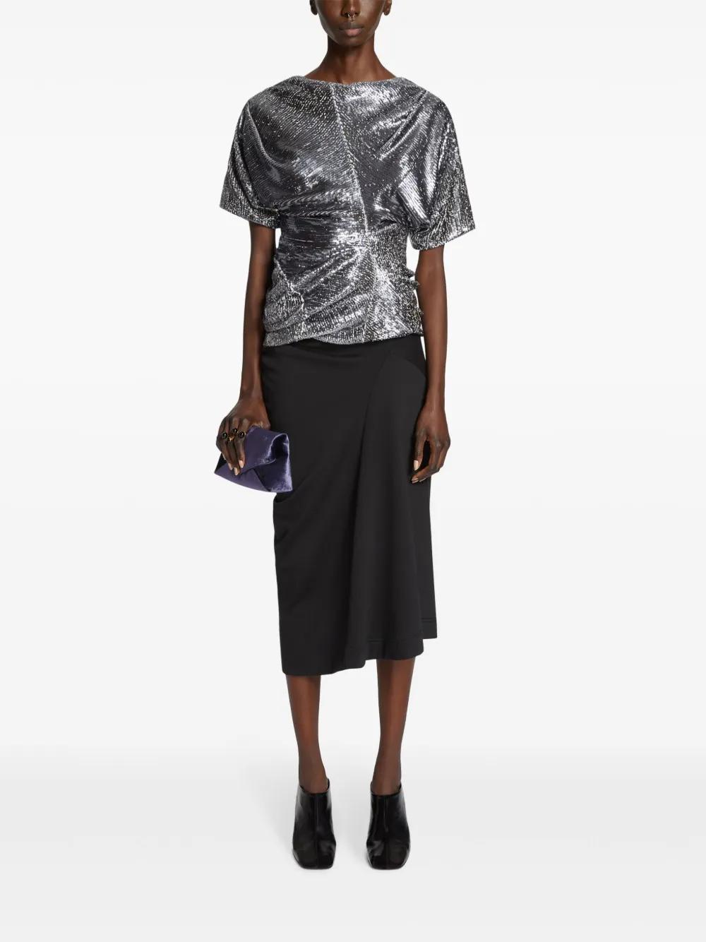 silver-tone crew neck short sleeves fitted waistline Model is 180 cm / 71 inches and wears size 34.