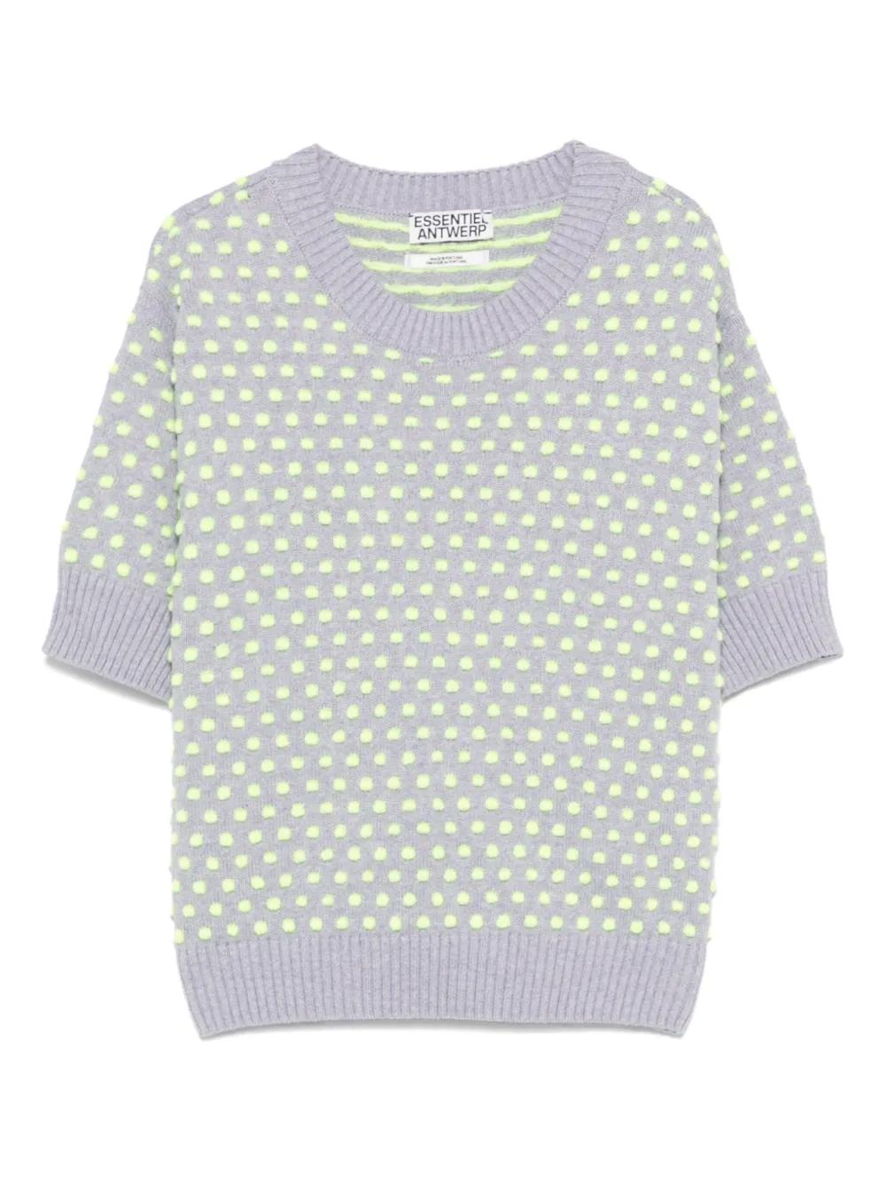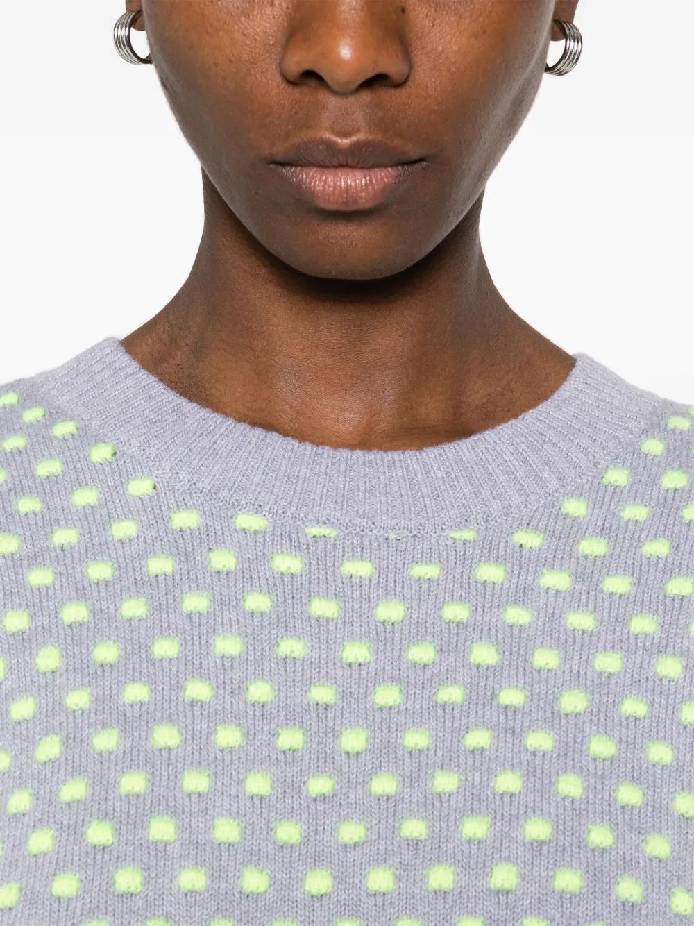 anthracite grey ribbed cuffs and hem polka dot embroidery crew neck