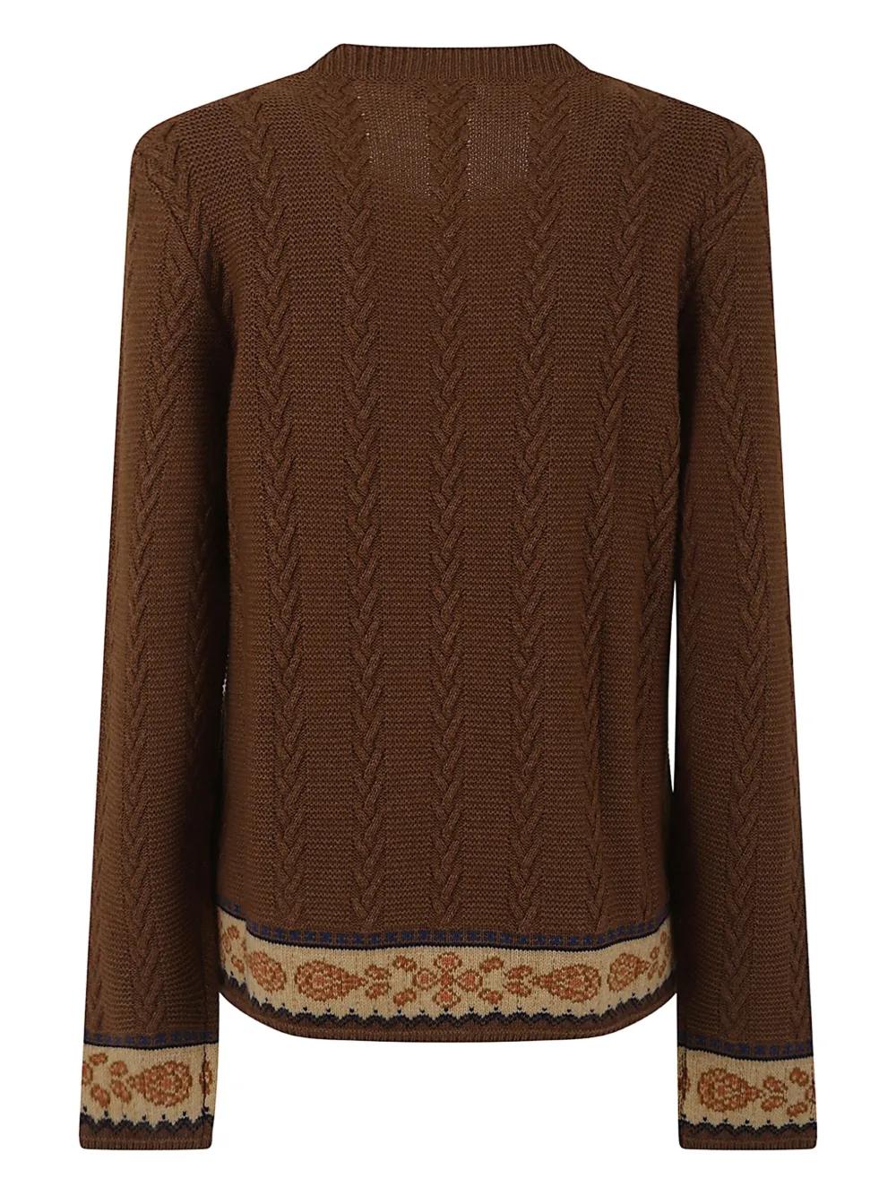 brown cable knit patterned cuffs and hem round neck long sleeves