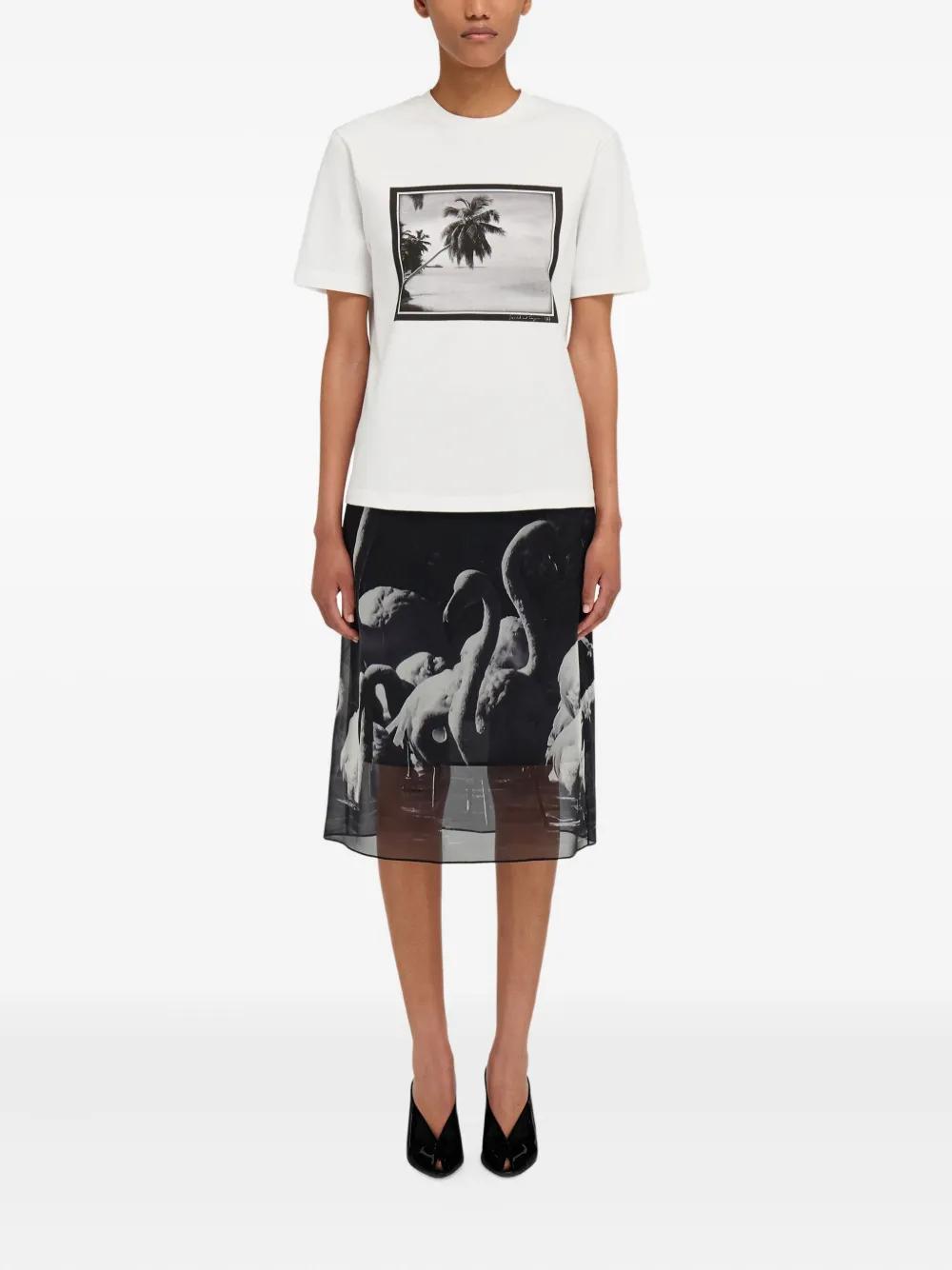 white palm-tree print ribbed neckline embroidered signature crew neck short sleeves