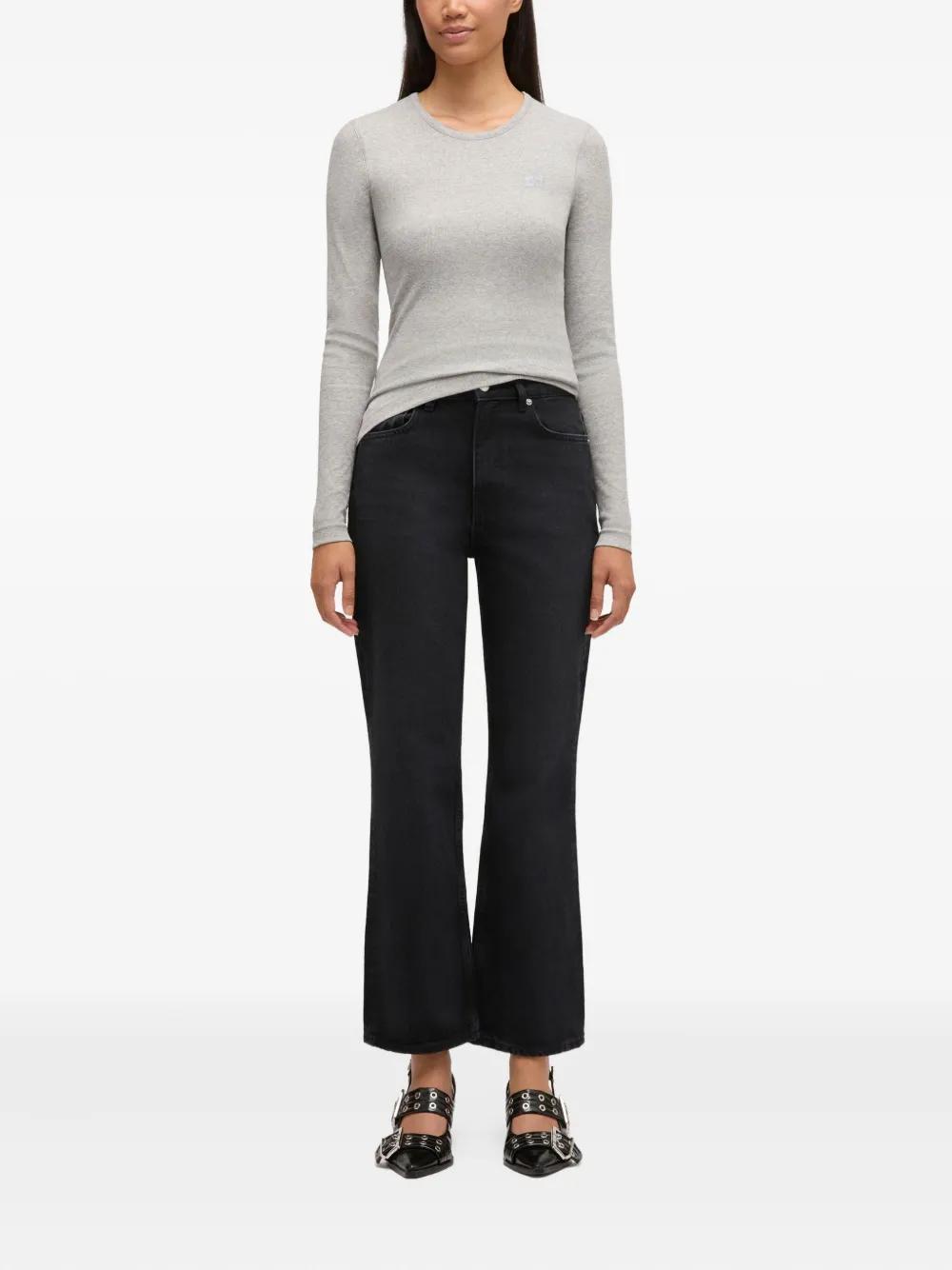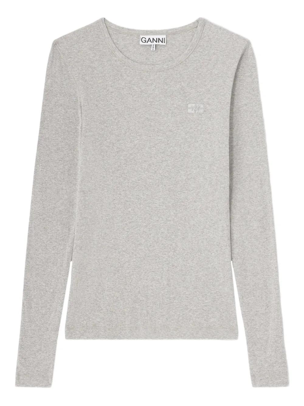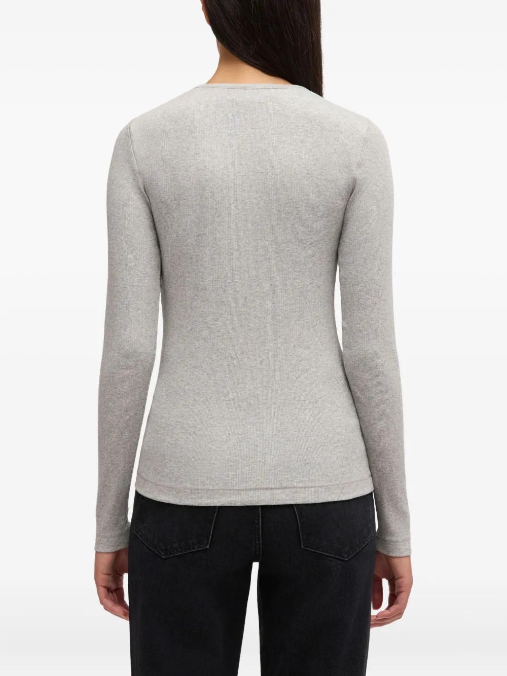 white rhinestone embellishment cold-shoulder style round neck long sleeves ribbed knit