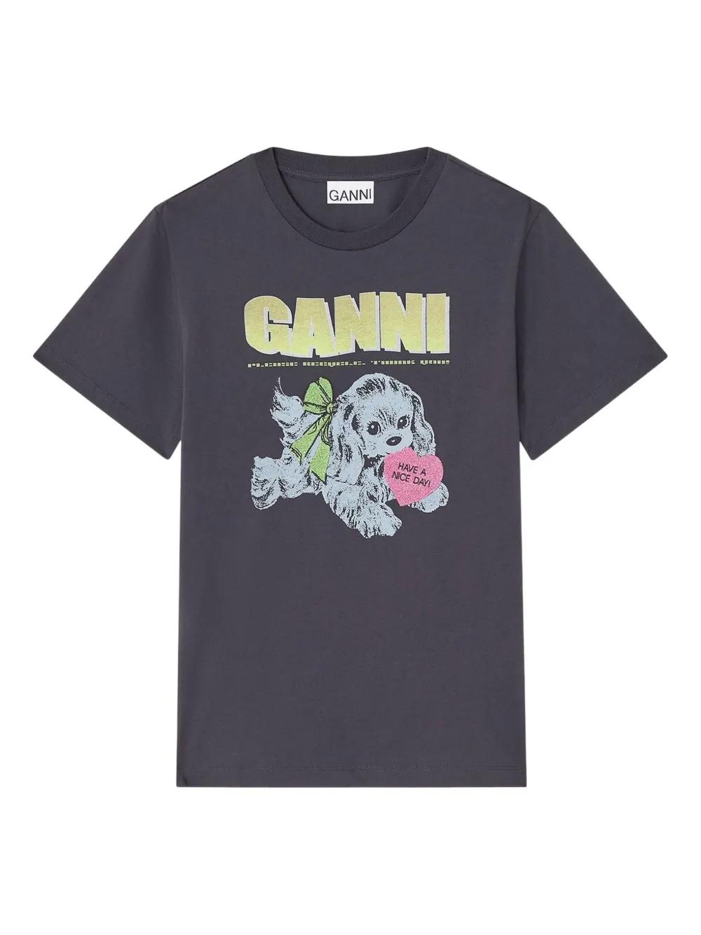 GANNI puppy print T-shirt - Grey