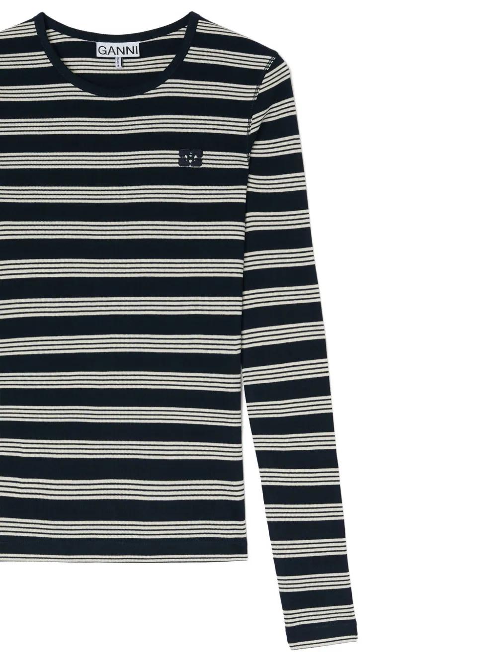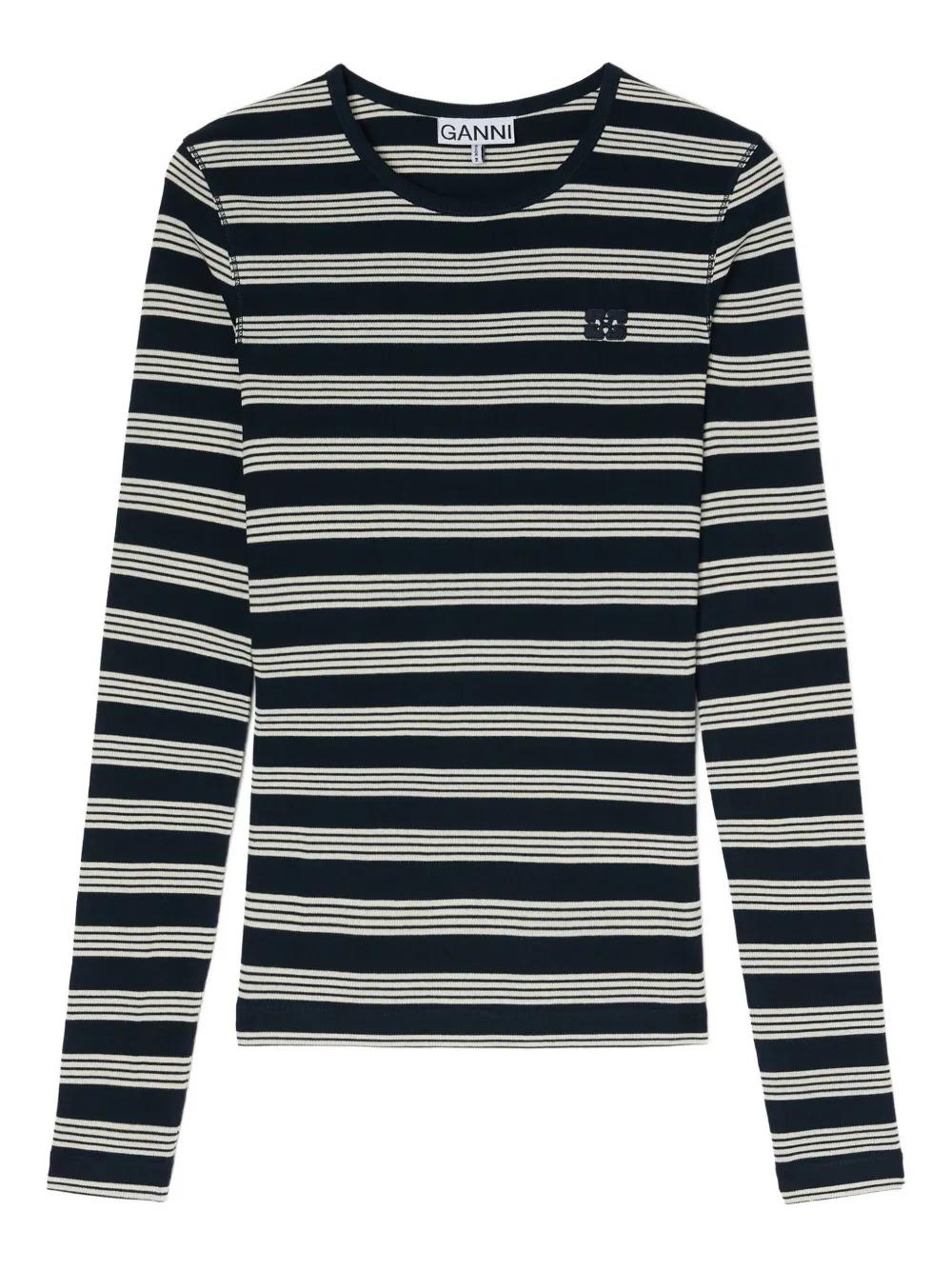 GANNI striped embroidered-logo T-shirt - Blue