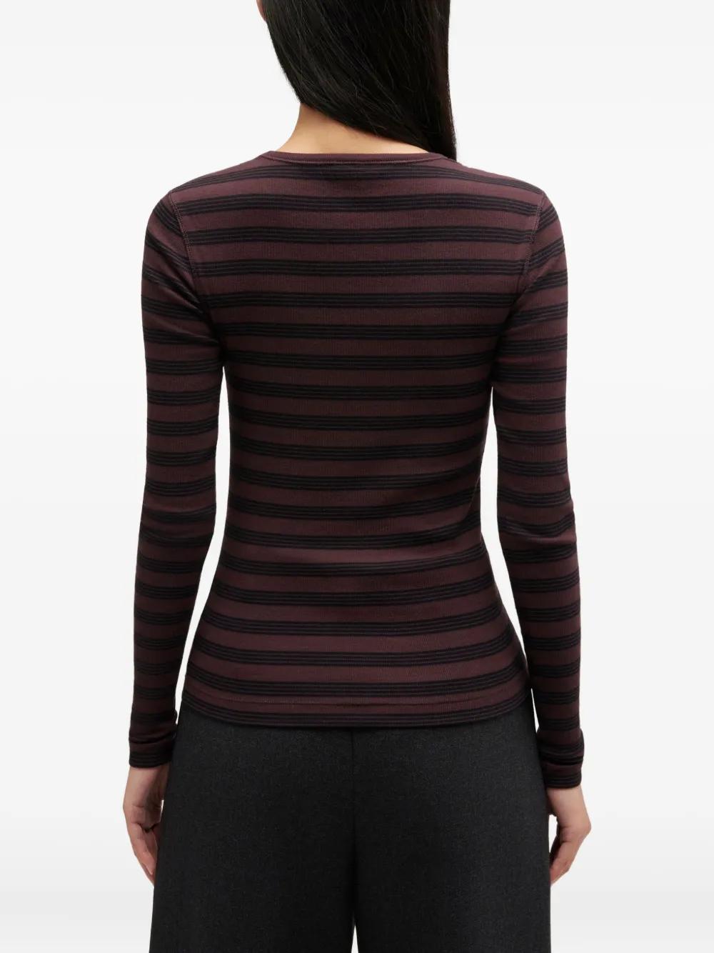 dark brown striped logo detail round neck long sleeves