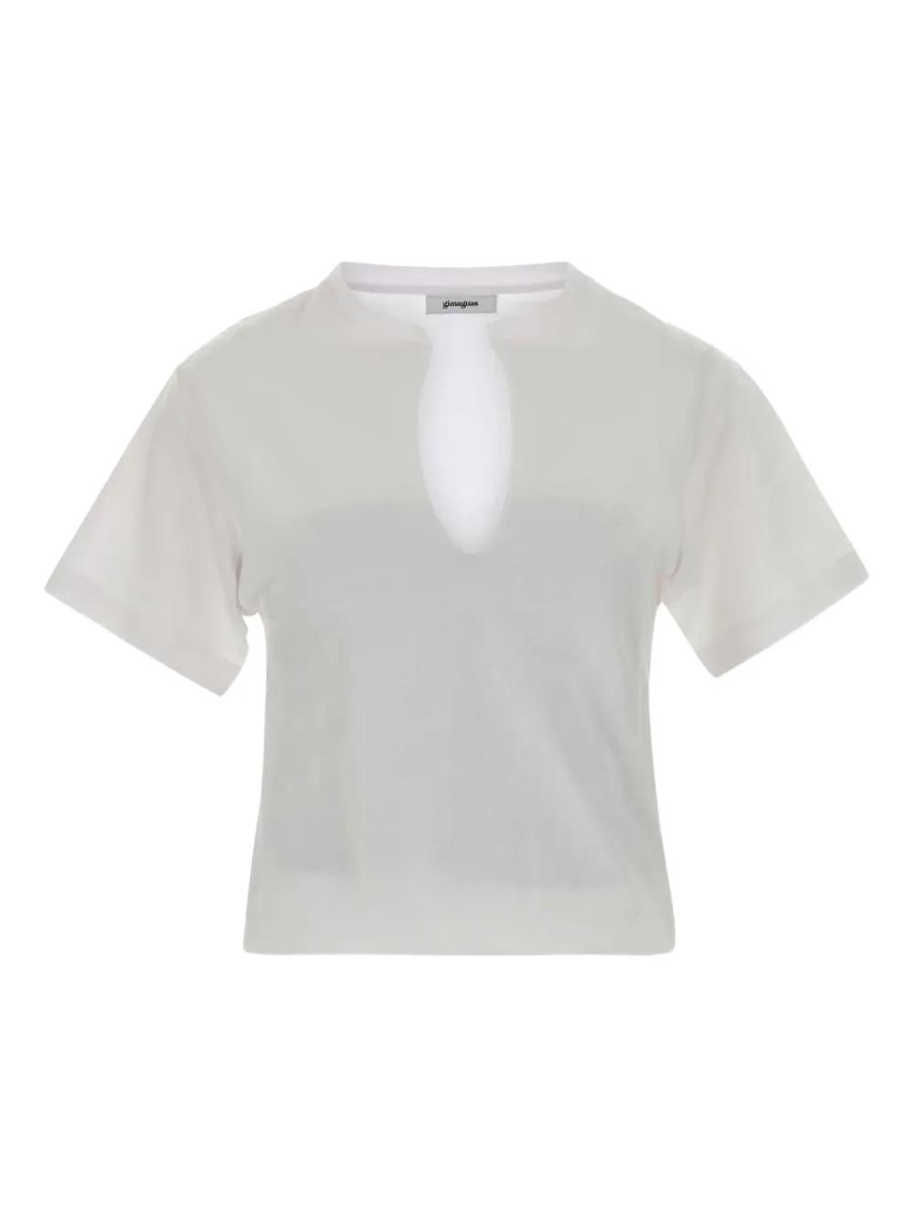 white stretch-cotton fine ribbed crew neck short sleeves rear cut-out detailing straight hem pull-on style