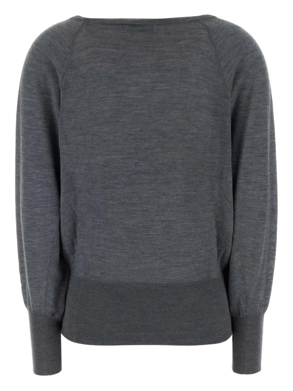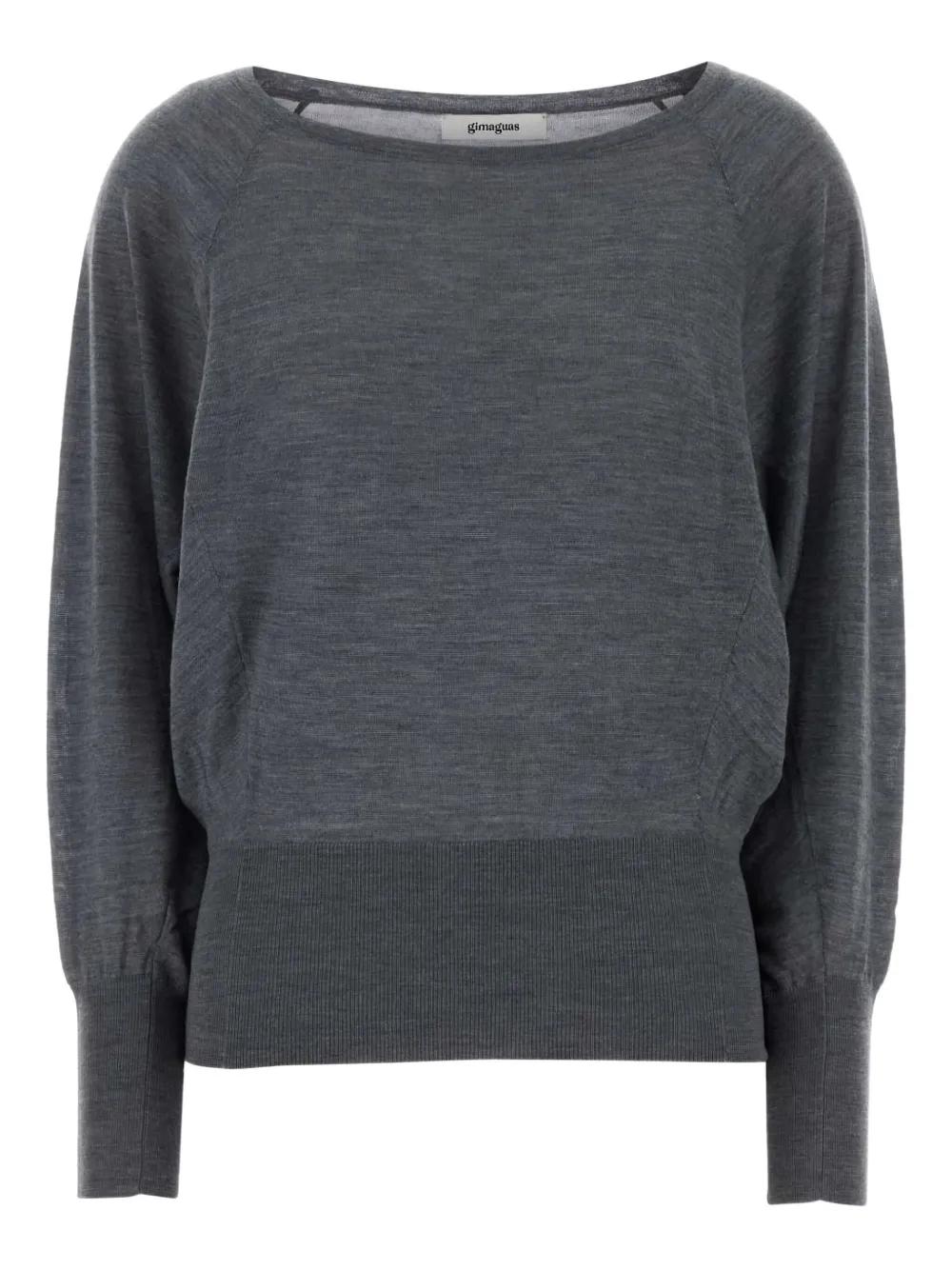 grey wool round neck long sleeves ribbed hem ribbed cuffs