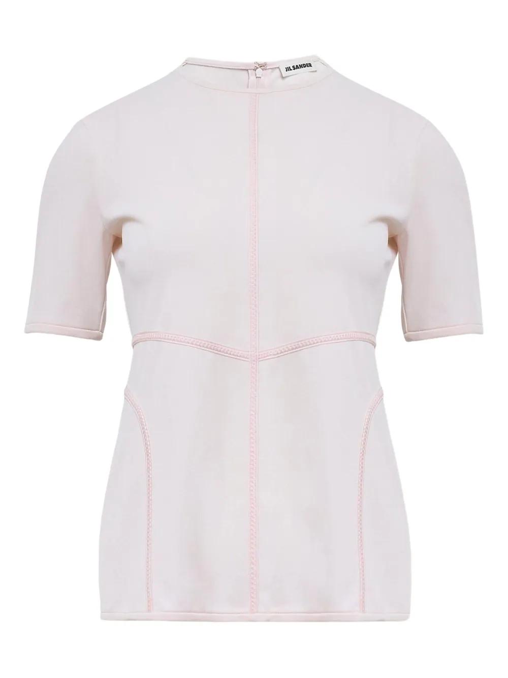 pink crewneck short sleeves seam detail back zip fastening