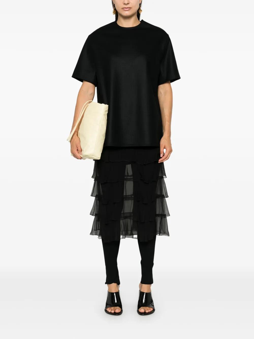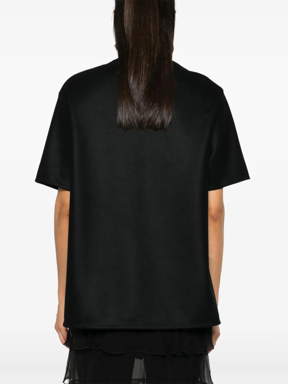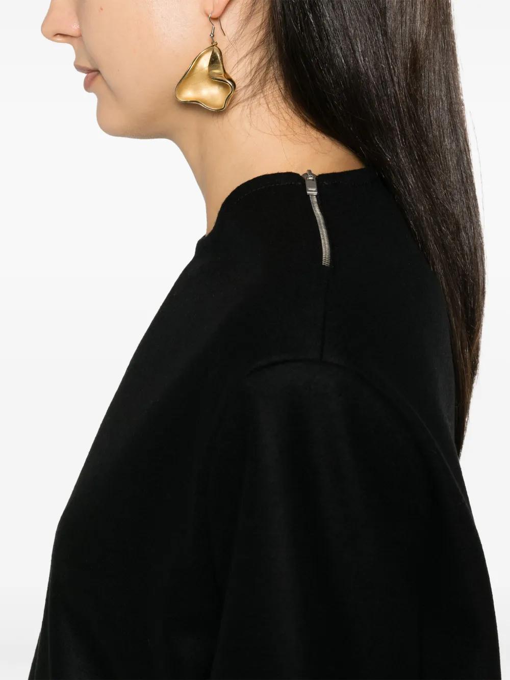 black wool knitted construction non-brushed fleece shoulder zip fastening crew neck short sleeves side slits straight hem