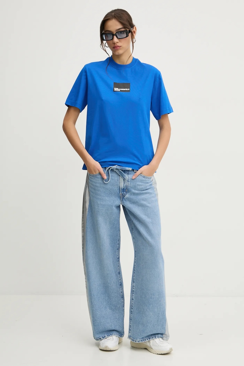 Karl Lagerfeld Jeans t-shirt bawełniany damski kolor niebieski A1W17006