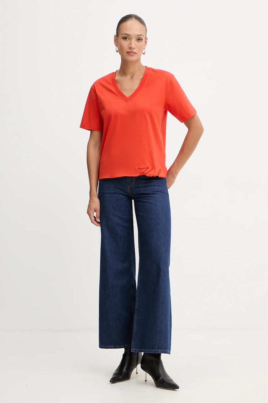 Karl Lagerfeld t-shirt bawełniany damski kolor pomarańczowy B1W17031