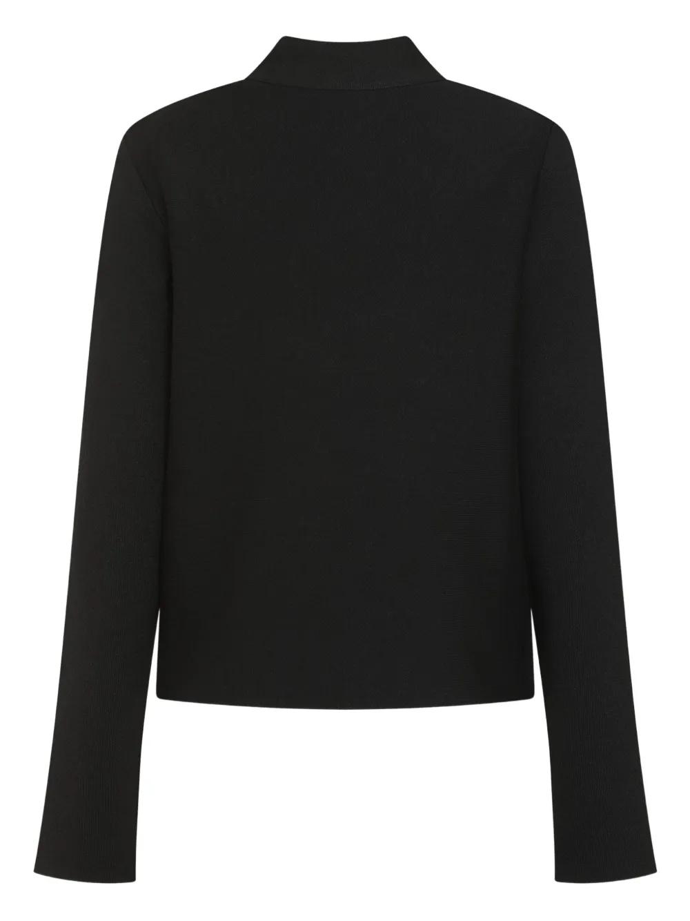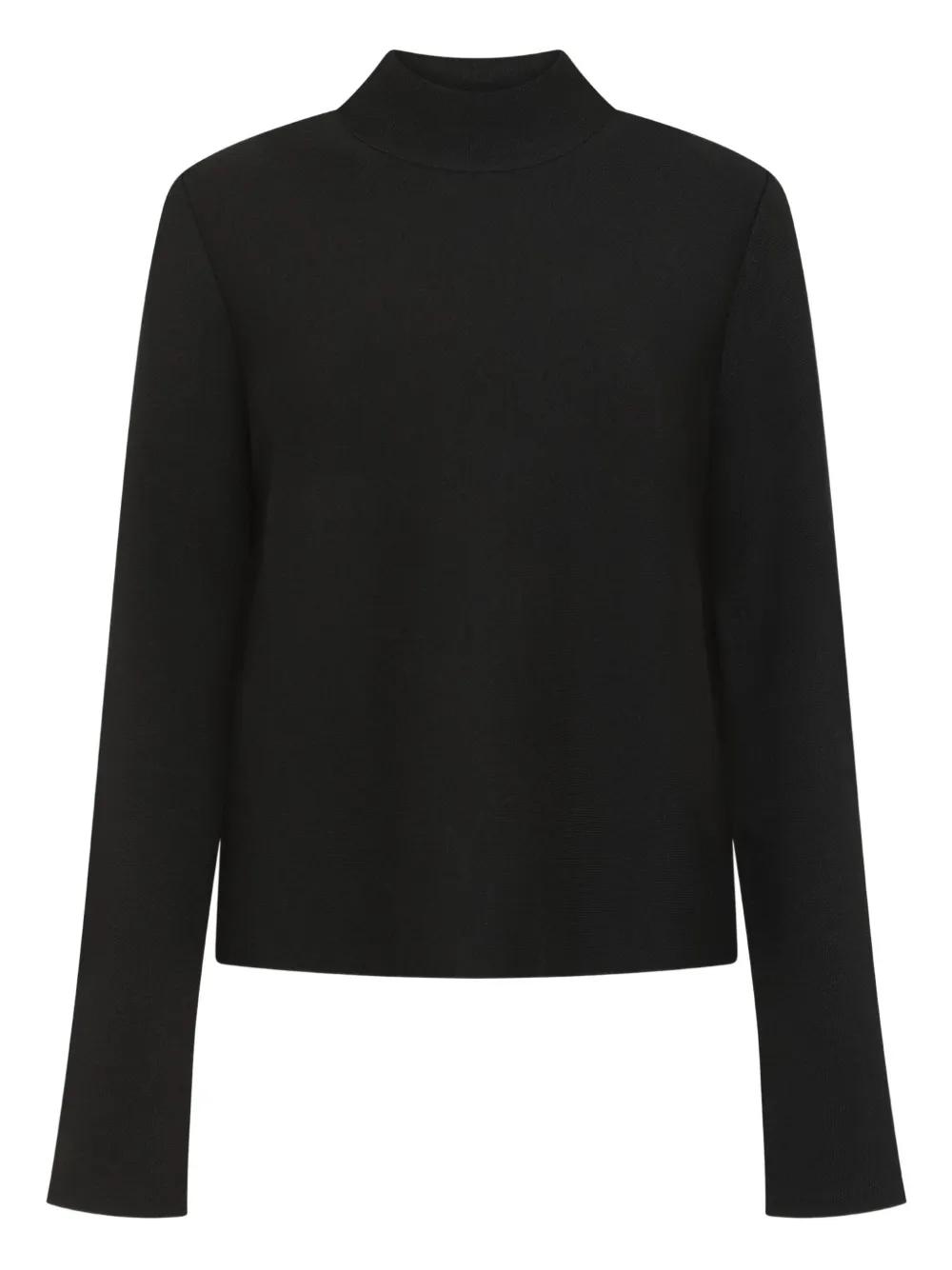 black high neck long sleeves wide cuffs boxy shape wool fabric