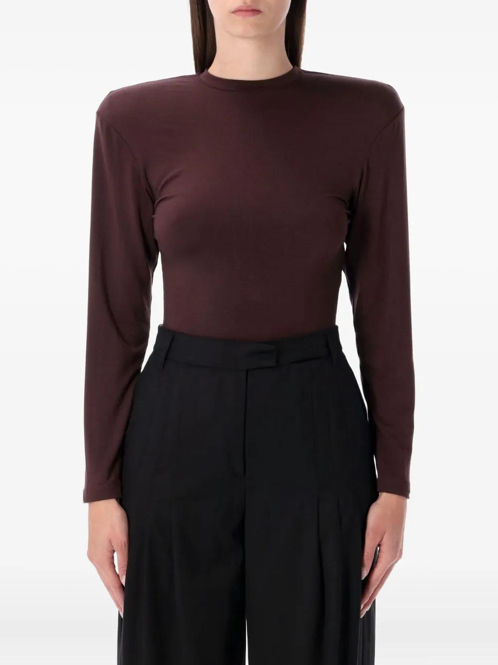 cherry red ribbed knit V-neck long sleeves embroidered logo at hem