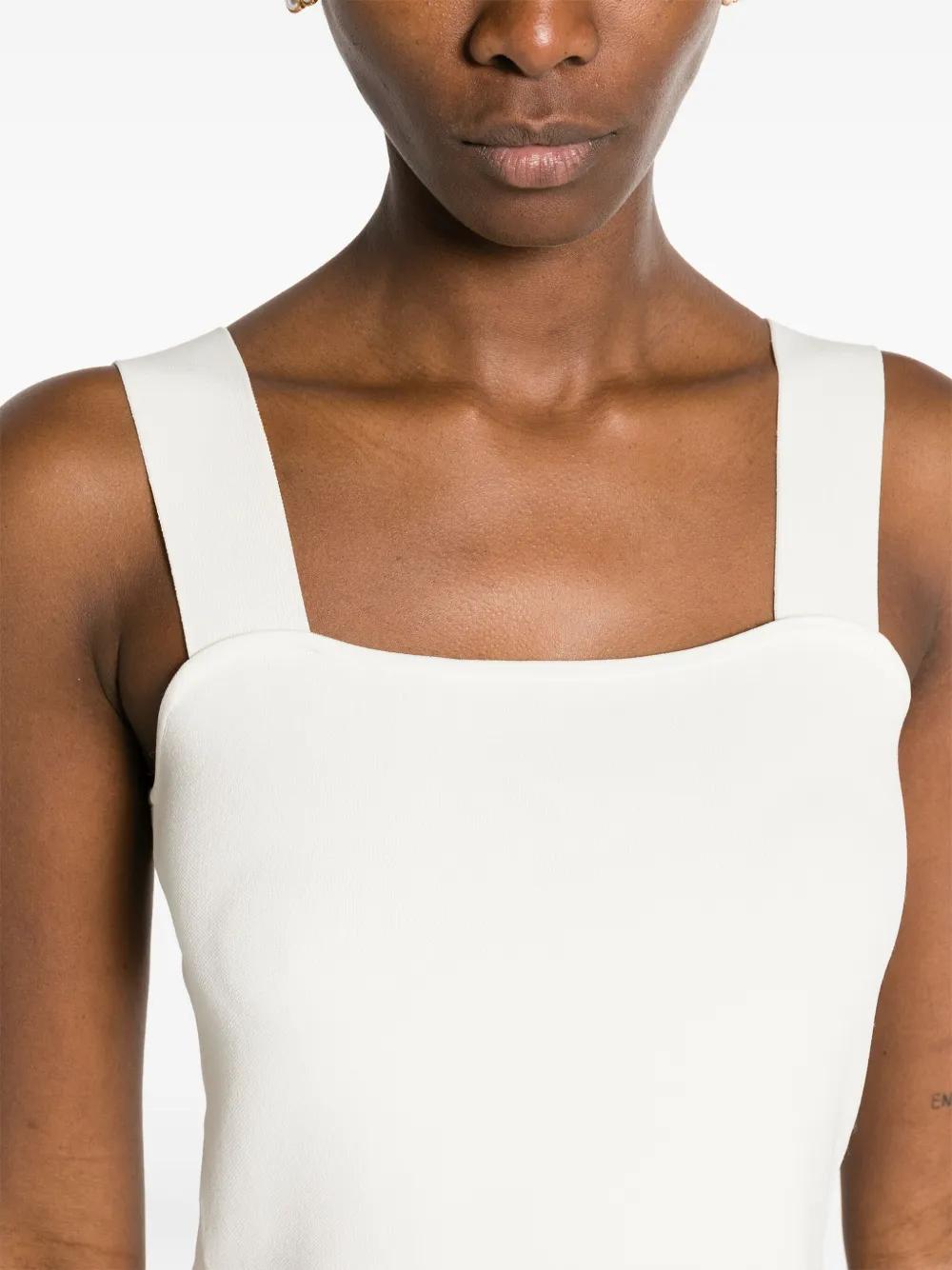 white stretch-design knitted construction square neck wide shoulder straps straight hem cropped