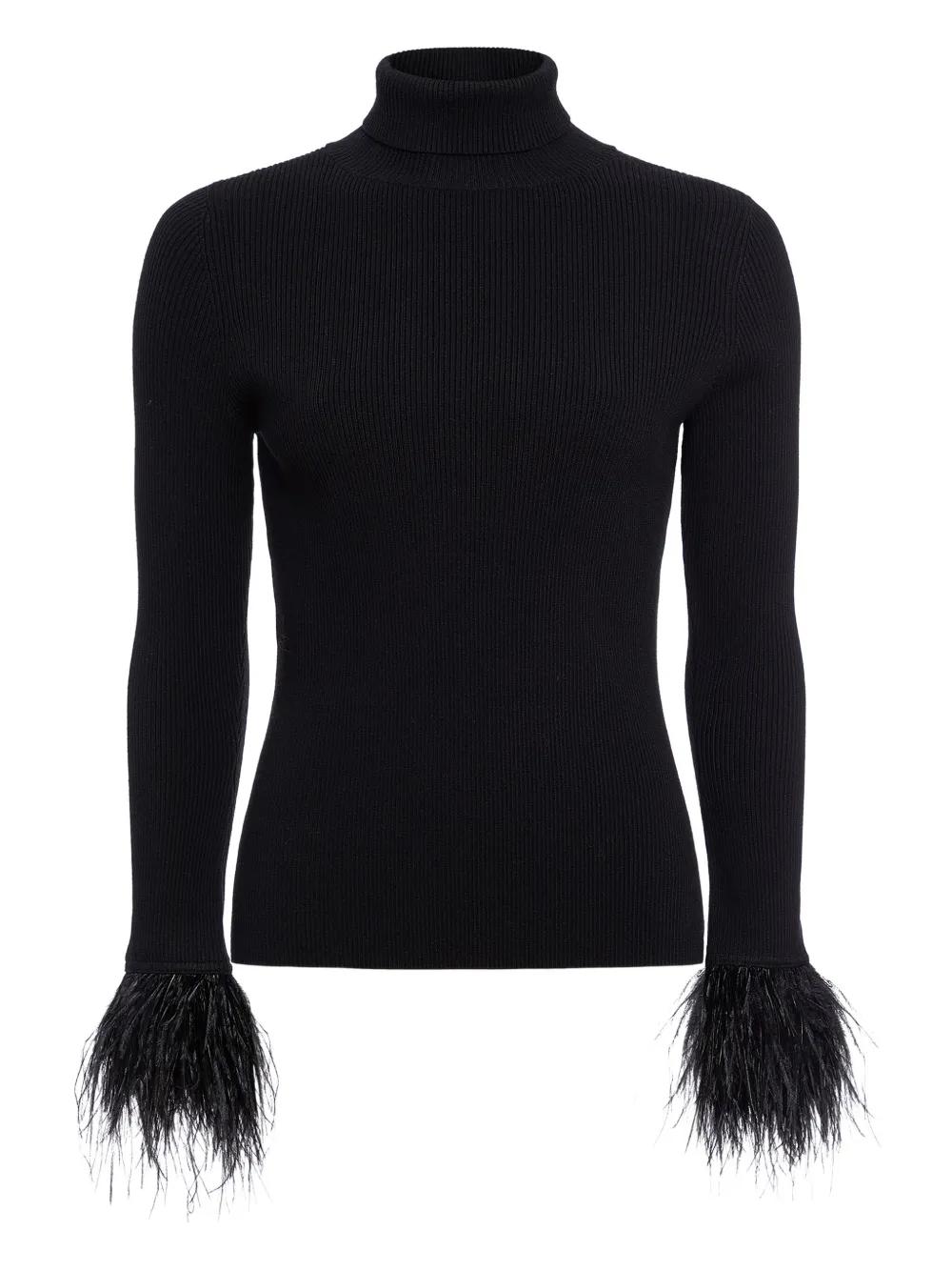 black pointelle details ribbed crew neck short sleeves ribbed hem and cuffs