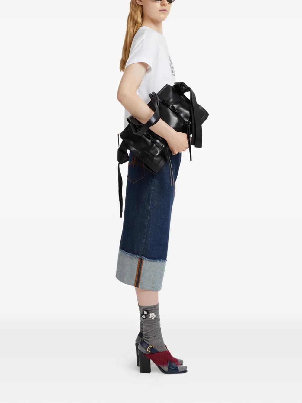 beige ribbed knit long sleeves crew-neck logo patch semi-raglan shoulder