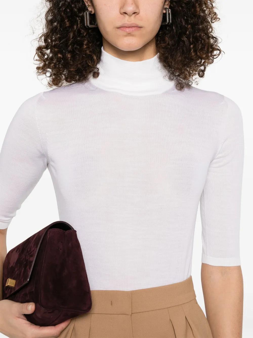dark grey long sleeves high neckline fitted design ribbed texture cropped length