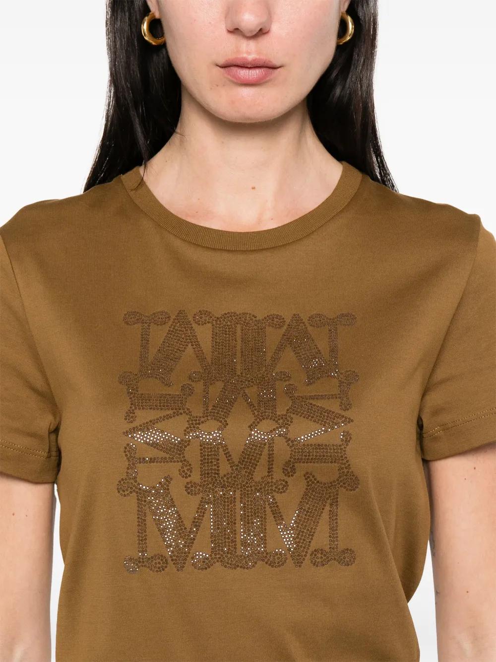chocolate brown crew neck short sleeves rhinestone embellishment