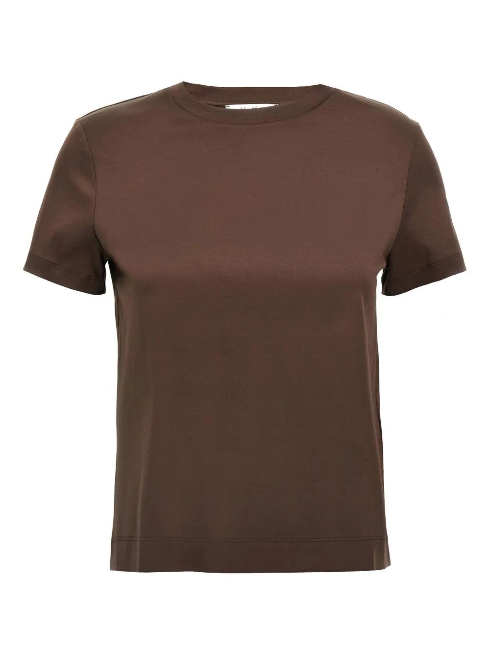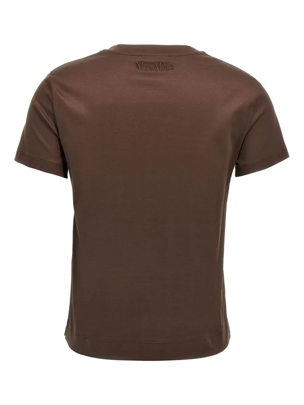 camel brown embroidered monogram pocket design crew neck short sleeves