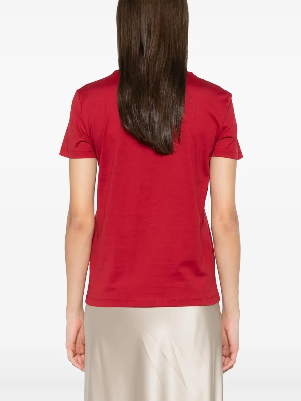 cardinal red chest patch pocket crew neck short sleeves straight hem