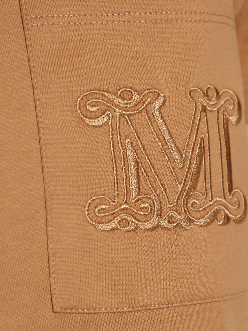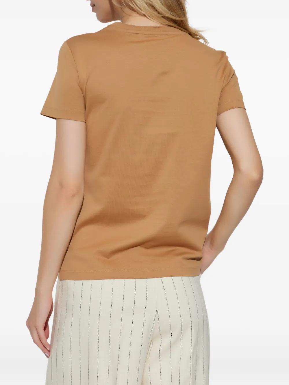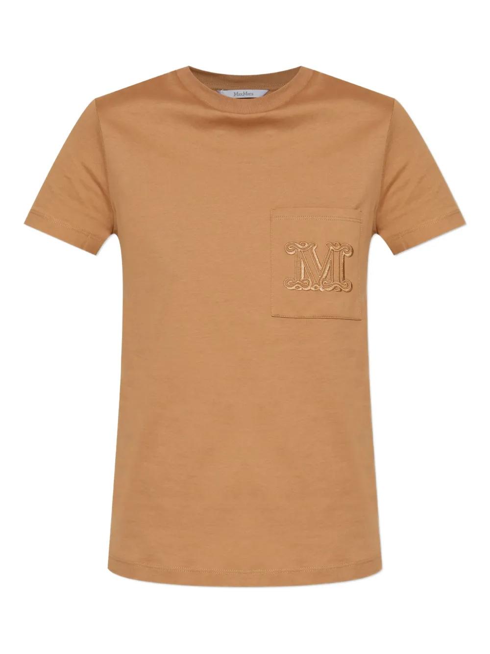 camel brown embroidered monogram pocket design crew neck short sleeves